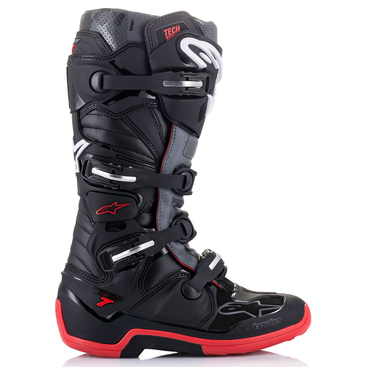 フルモデルチェンジにより更なる進化を遂げたTECH7。足首のヒンジによるピボット機能は、ブレーキやシフト操作を格段に向上させ、左右へのねじれに強い剛性を併せ持つ理想的な性能。初心者にも扱いやすいようブーツ本体を大幅に軽量化。また、多彩なカラーバリエーションでライダーの好みに合わせたコーディネートが可能。