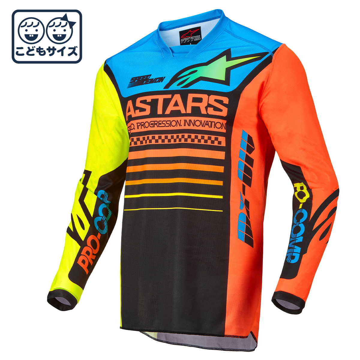 アダルトモデル同様の機能盛り込んだユースモデル。吸湿・耐久性に優れる軽量素材を使用し、厳しいコンディションでのライディング時もライダーの期待を裏切らない機能。動きやすさやフィット感を向上するため、背中はドロップテールデザイン、手首にはストレッチ素材を使用。