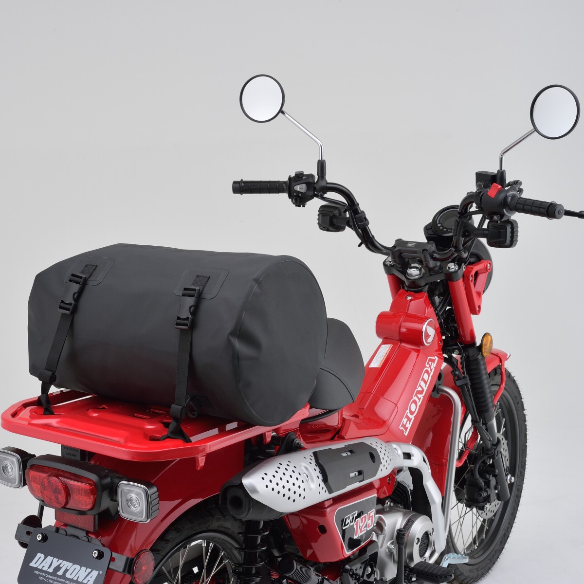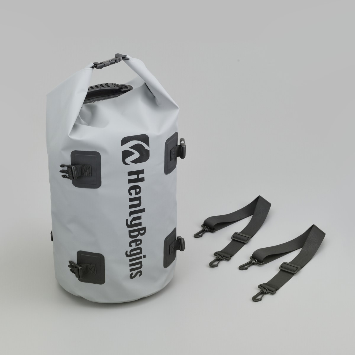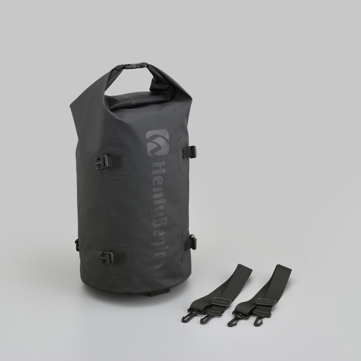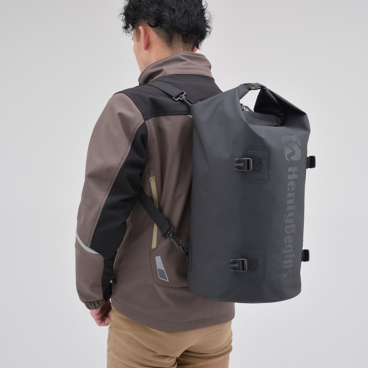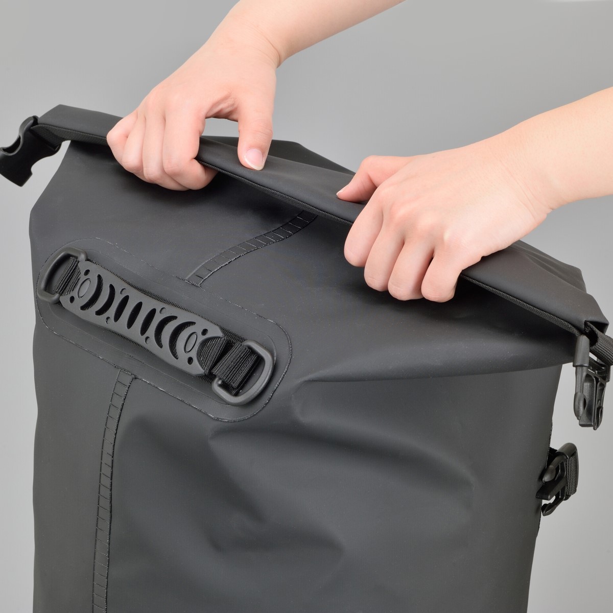 大切な荷物を雨から守る防水バックパック。最大積載重量:7kg 本体重量(付属品込):750g素材:ターポリン生地 付属品:ショルダーベルト×2サイズ:φ300×L450(mm)
