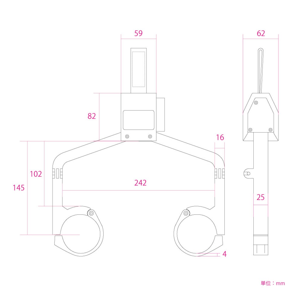 車種適合: 汎用(アウターチューブ径Φ59-61mm,取付部に必要な高さ25mm,中心間距離190mm,)
