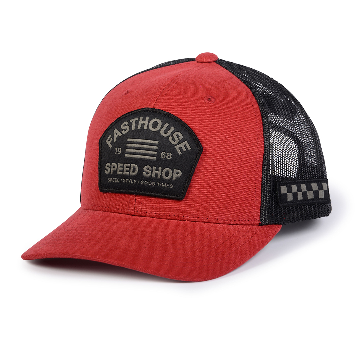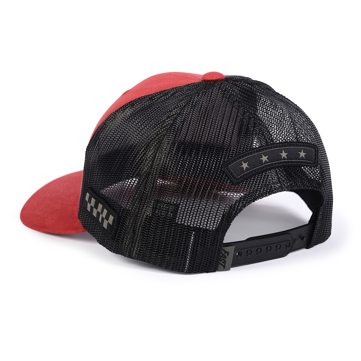 ファストハウスのオリジナルデザインをあしらったスナップバックトラッカーハット。