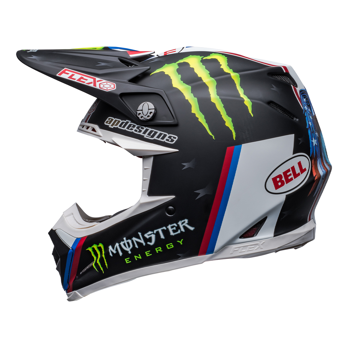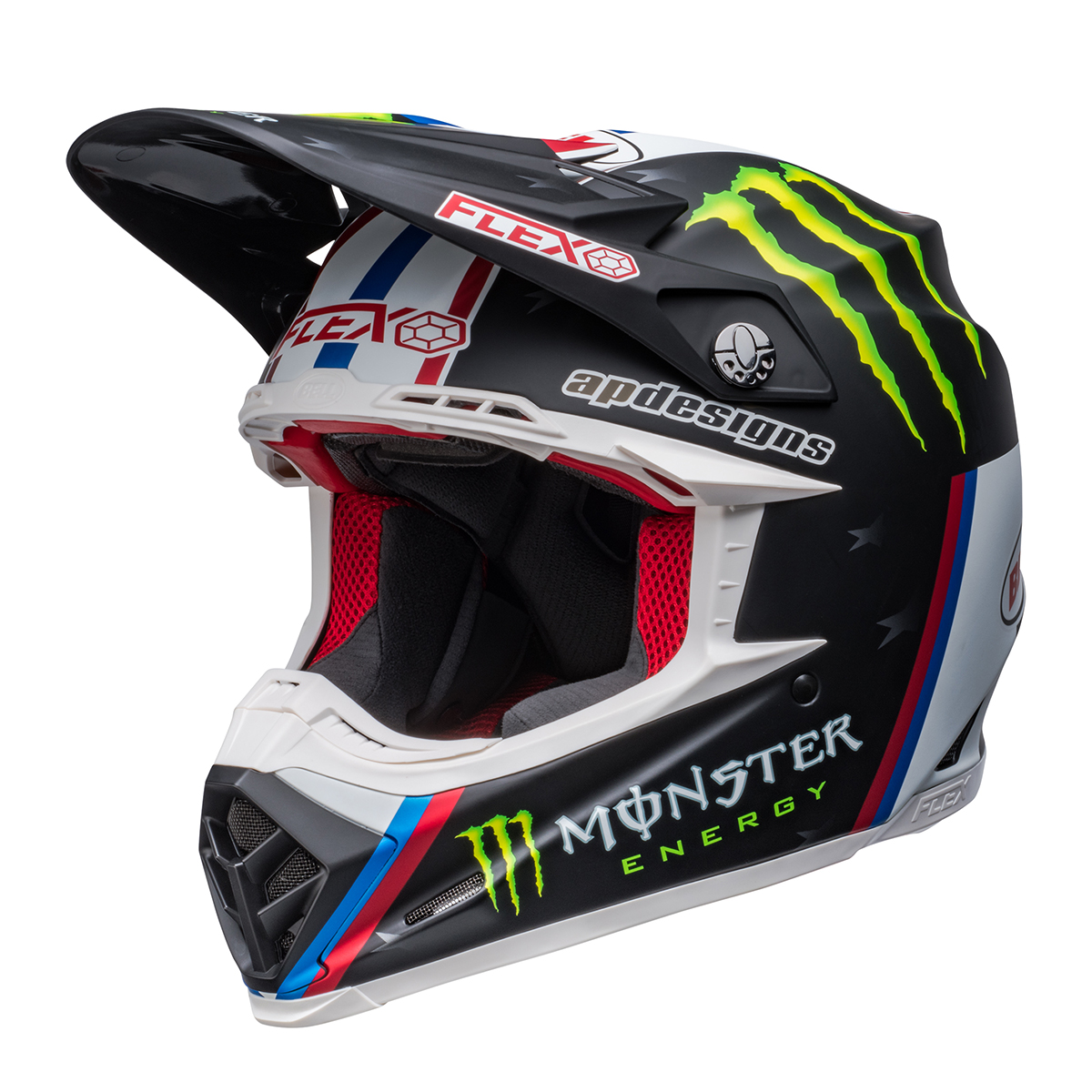 "PROGRESSIVE PROTECTION" MOTO-9S FLEXはBELLが長年培ってきた伝統的な性能と高いプロテクション能力を受け継いだ先進的なヘルメット。業界初の革新的システム「フレックスシステム」は、密度の異なる3層のインパクトライナーが、より包括的に衝撃を分散させ、回転エネルギーの伝達を減少させる。フレキシブルなライナーはそれぞれの頭の形に細かく合わせたフィットを可能にする。様々な頭の形に対応すると同時に、ヘルメット内部のベンチレーション向上にも貢献。ダートフリーク取扱の正規品には、ヘルメットのフィット感、ホールド感を高める専用フィッティングパッドが付属。(ソフト・ハード 各1セット)