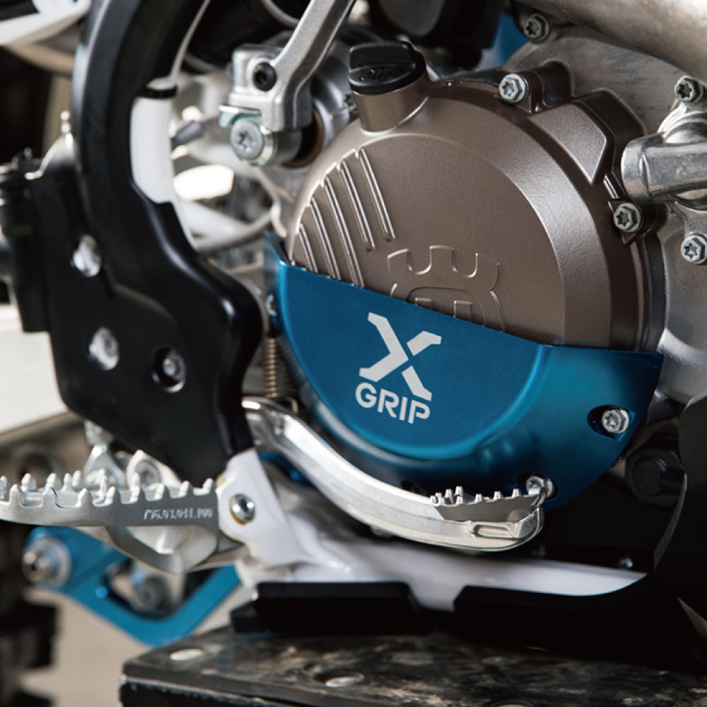 転倒時などにHIT率の高いクラッチカバーを、軽量なアルミニウム製ガードでしっかり保護。車種専用設計で計算されたフィッティングと、アルマイト加工でドレスアップにも。