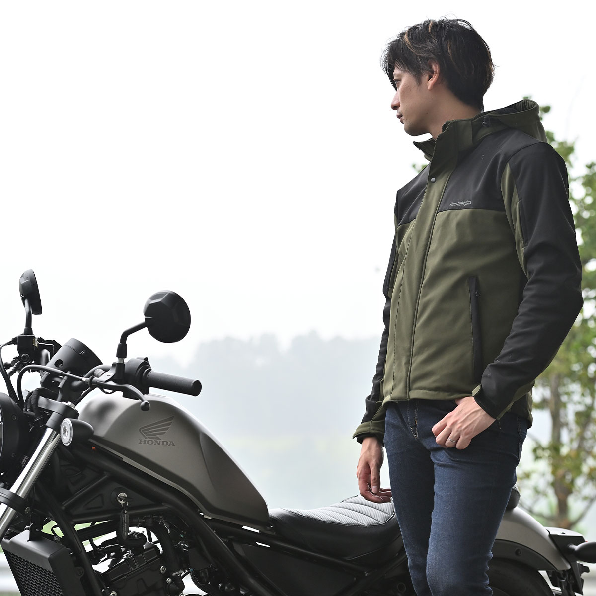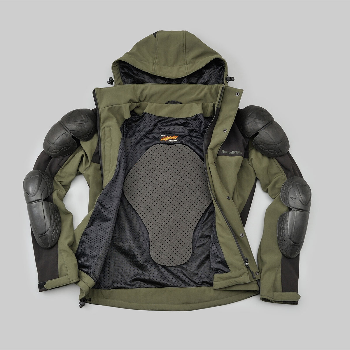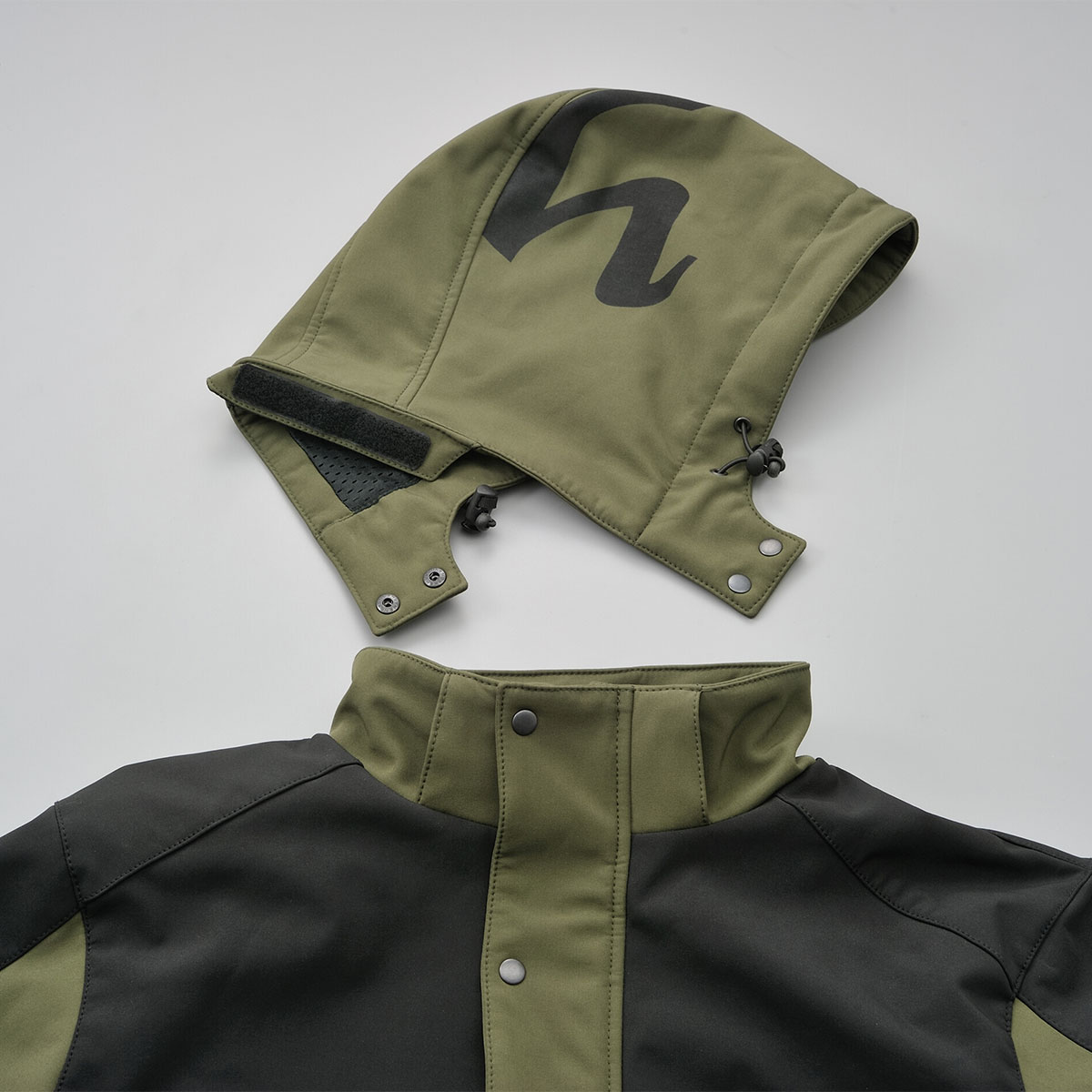 防風ソフトシェル素材のプロテクター付きパーカー