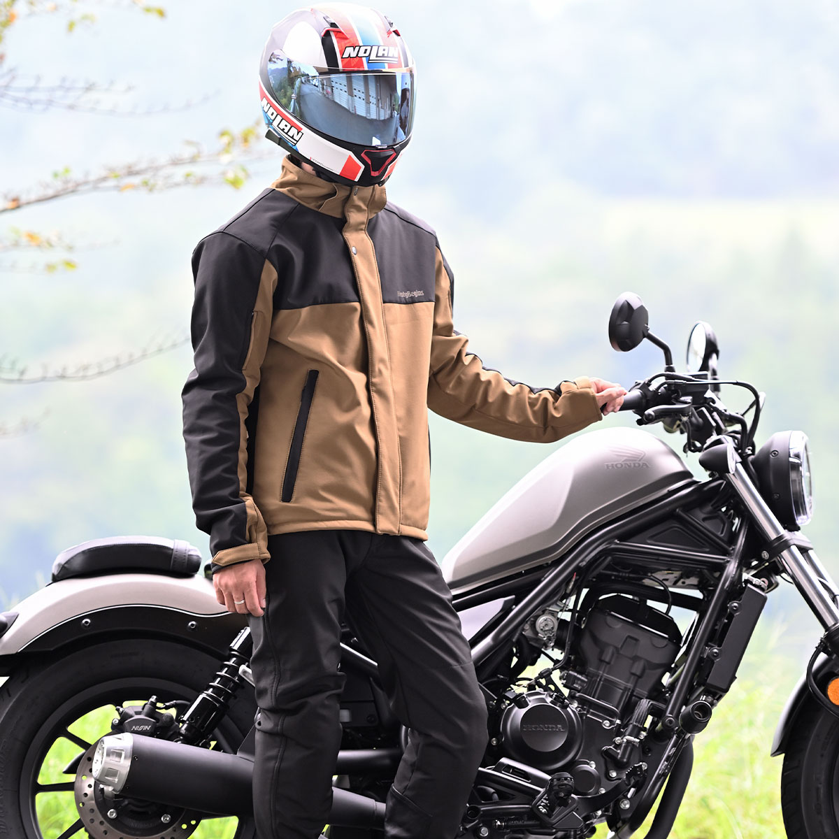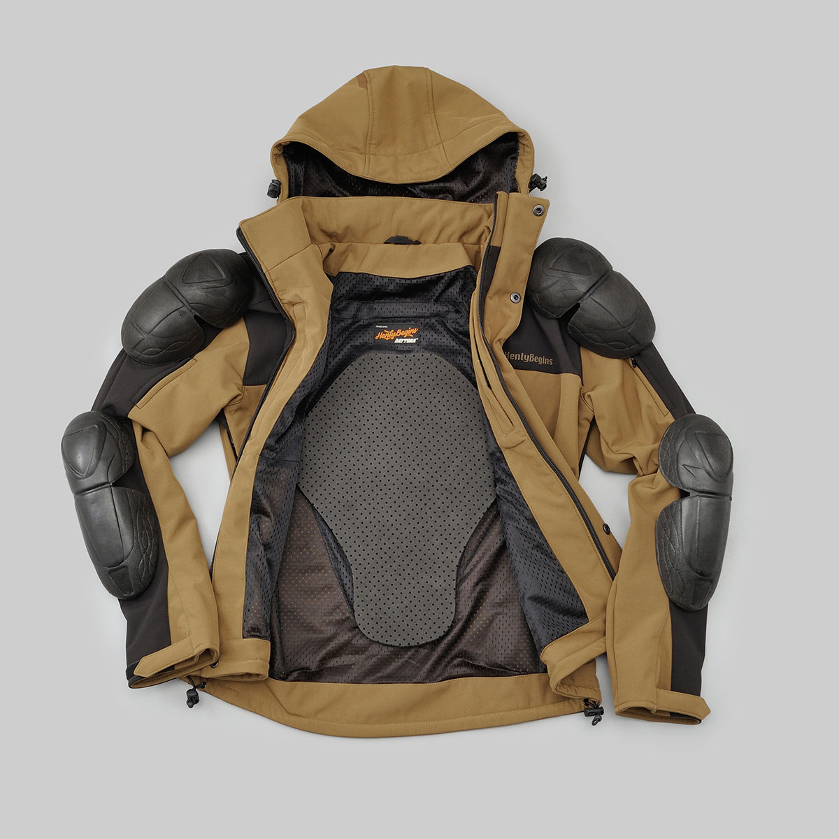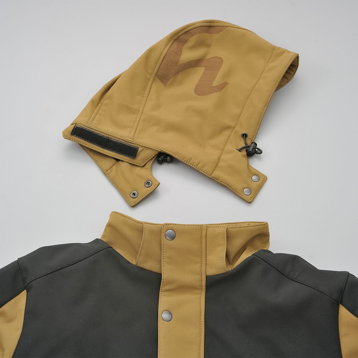 防風ソフトシェル素材のプロテクター付きパーカー