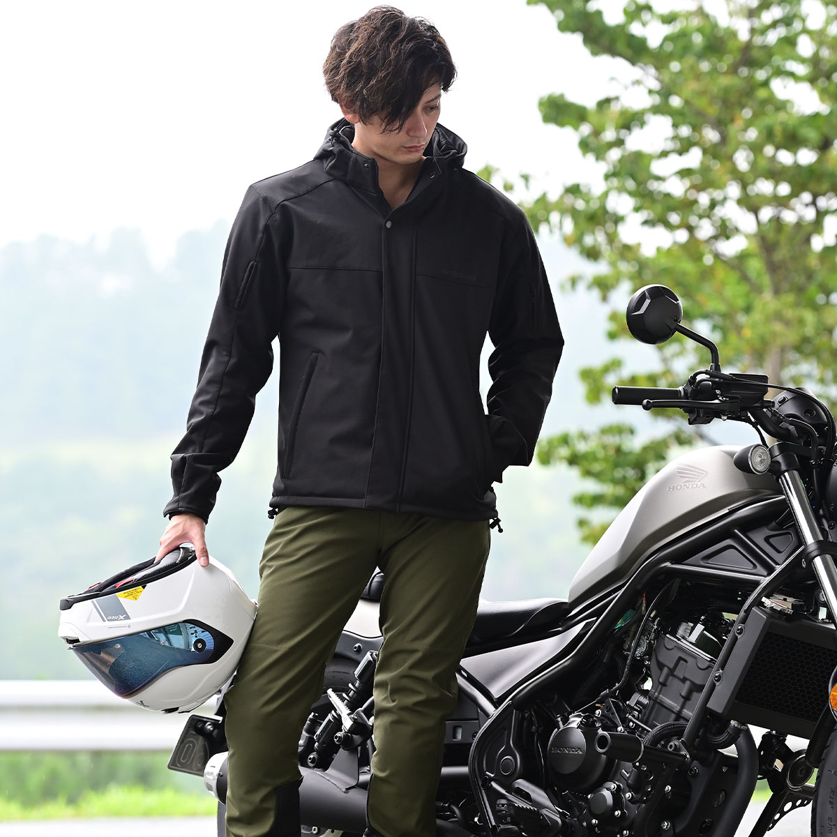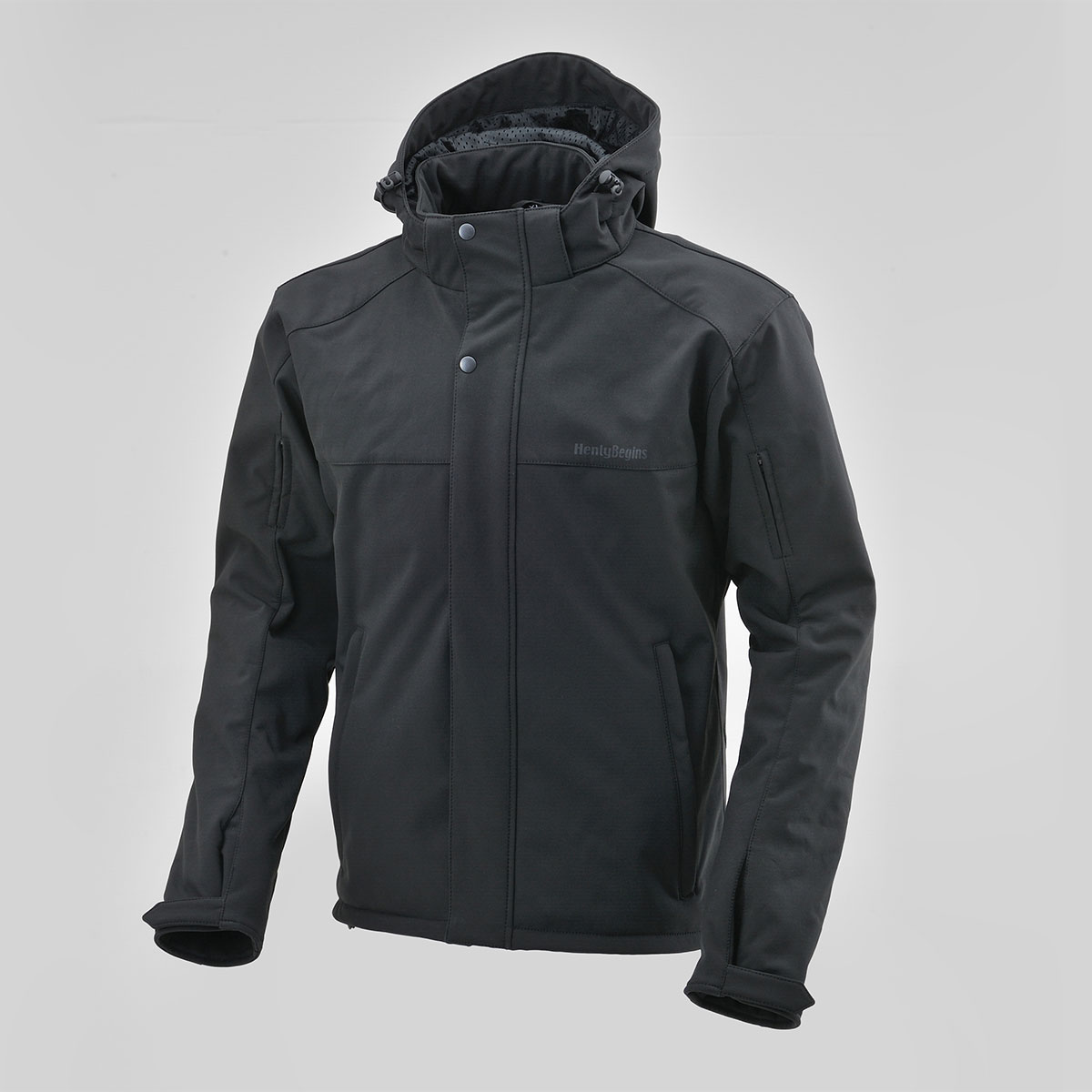 防風ソフトシェル素材のプロテクター付きパーカー