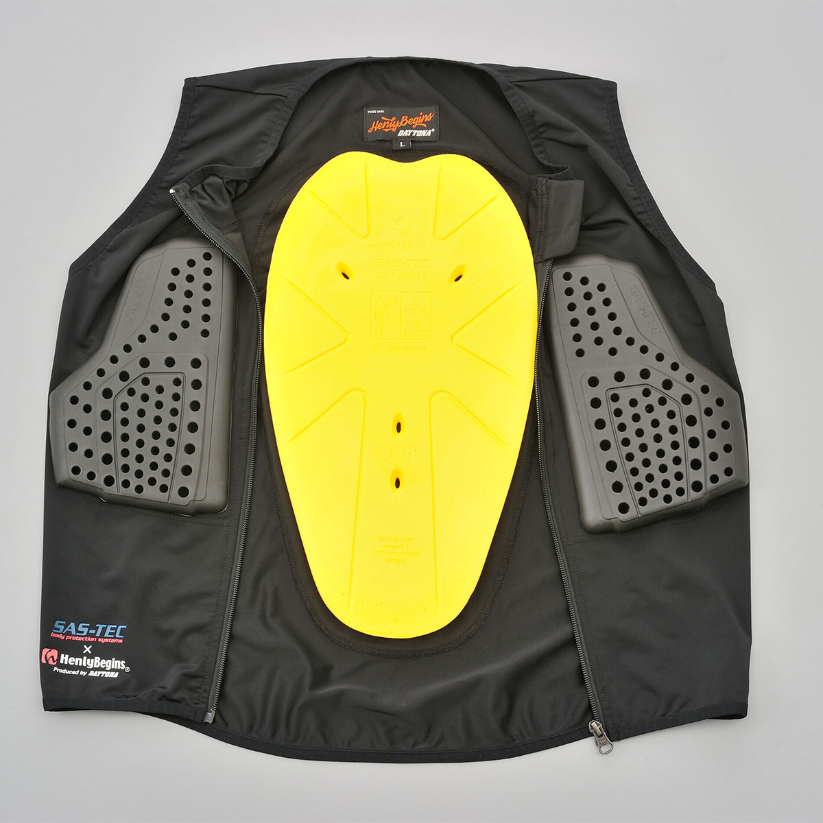 衝撃時に瞬間硬化するSAS-TEC製プロテクターを、胸、背中に装備。生地はストレッチ素材を採用。ソフトな装着感と体へのフィッティングが高いプロテクターインナーベストです。