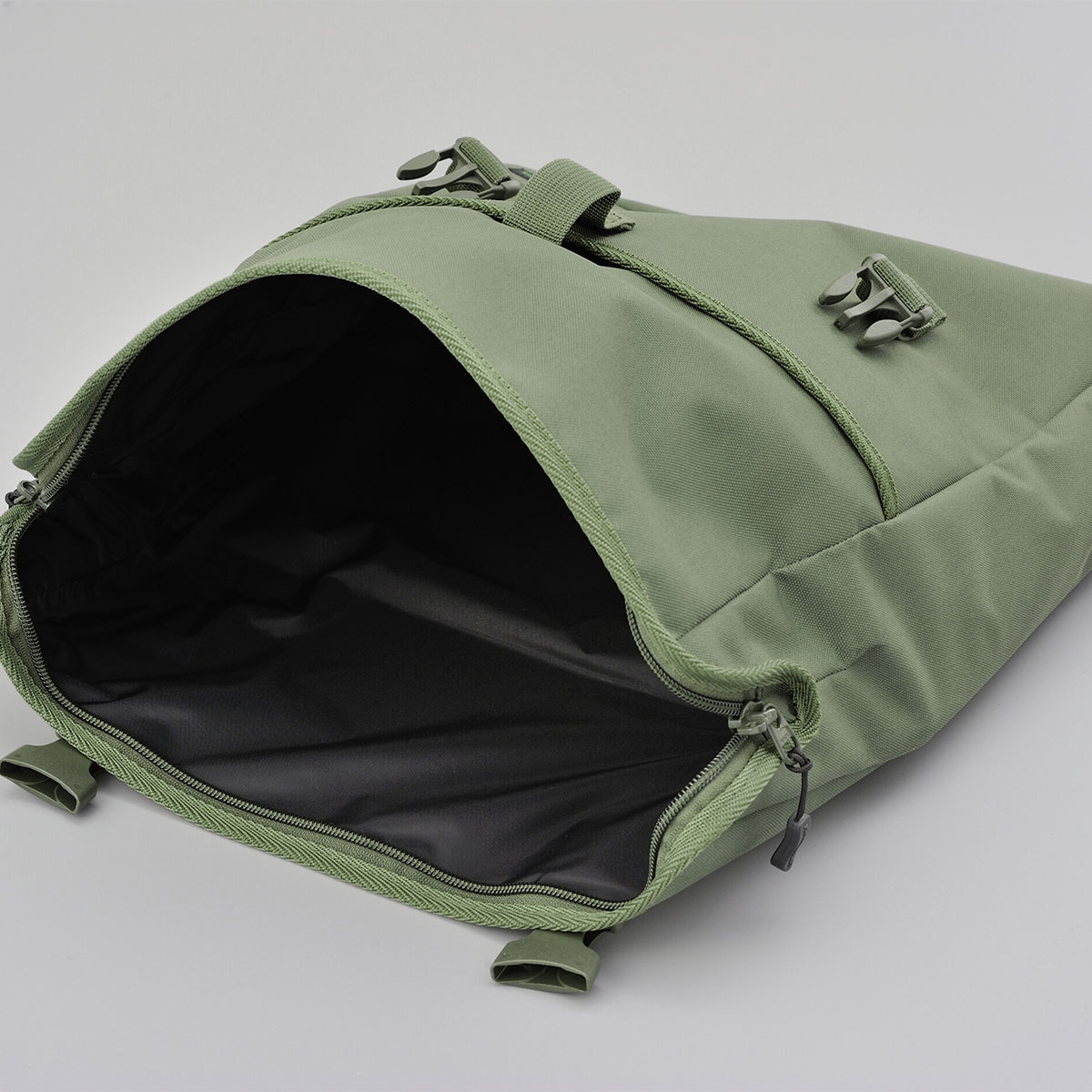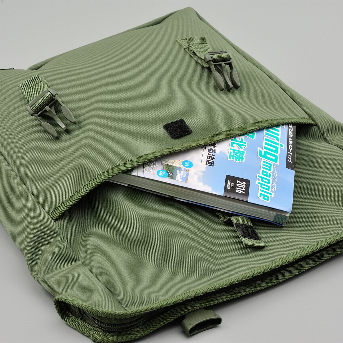 ファスナーは荷こぼれを防止。2種類の固定ベルトが付属。