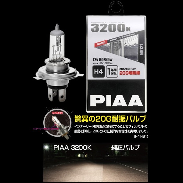 インナーリード線を2点支持にすることでフィラメントの振動を抑制し、20Gという圧倒的な耐振性を実現しました。(H4、HS1)