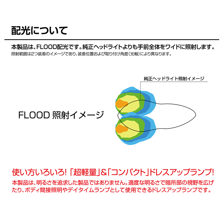「ヘッドライトのサポート」「ボディ間接照明」「デイタイムランプ」などに。