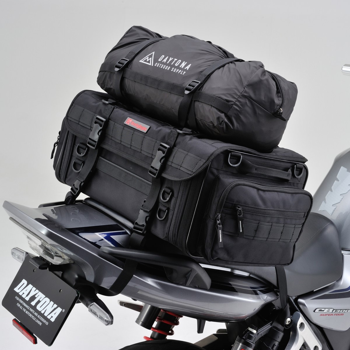 1人でも設営が簡単なテントはポールが地面から垂直に近い角度で立ち上がることで天井が高く室内が広々。前後左右4か所のメッシュは開閉できるため、春から秋まで快適に過ごすことができます。前・後室はイスやテーブル、荷物などを置くのに便利。収納時は幅435mmに収まるコンパクトなツーリング用ソロテントです。