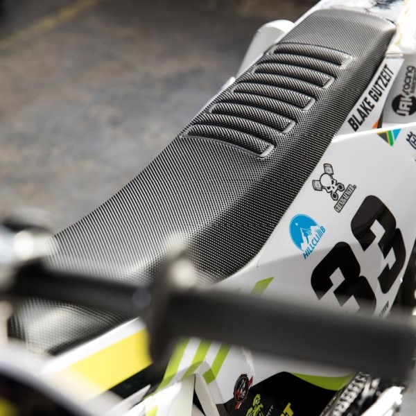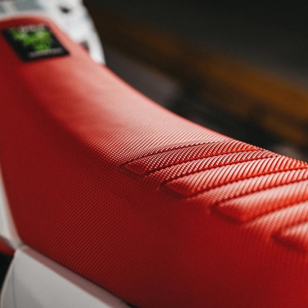 2020年モデルのTE250iに取り付けました。純正のシートカバーに比べて伸縮性がかなり厳しいうえに、余裕を持たせずギリギリのサイズに仕上げてあるため、取り付け作業は結構な力仕事になりました。また、所有していた一般的なタッカーではシートのフレームに刃が立たなかった為、エア式のタッカーを借りて取り付けました。グリップはとても良く、ハスクバーナが純正オプションで使用していたシートカバーと同じ様な感触です。