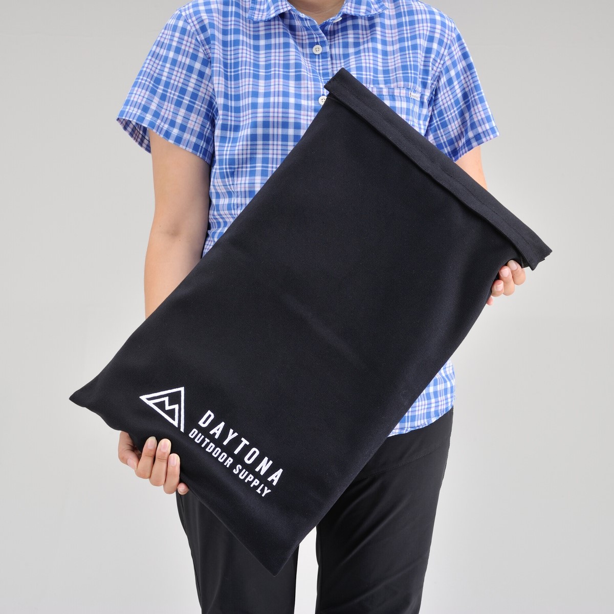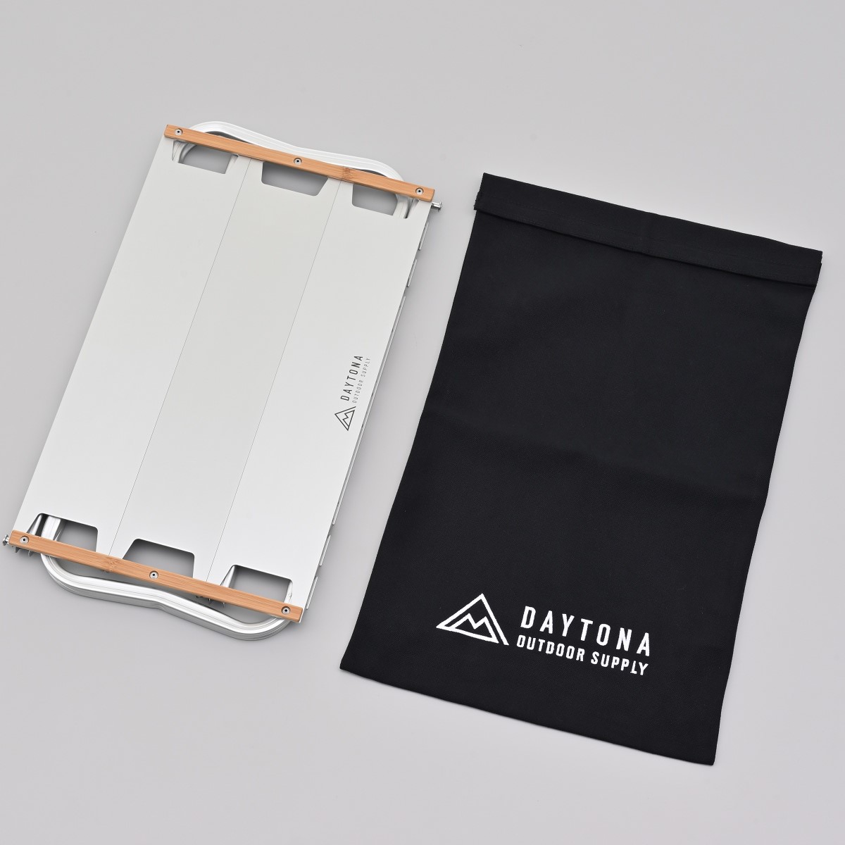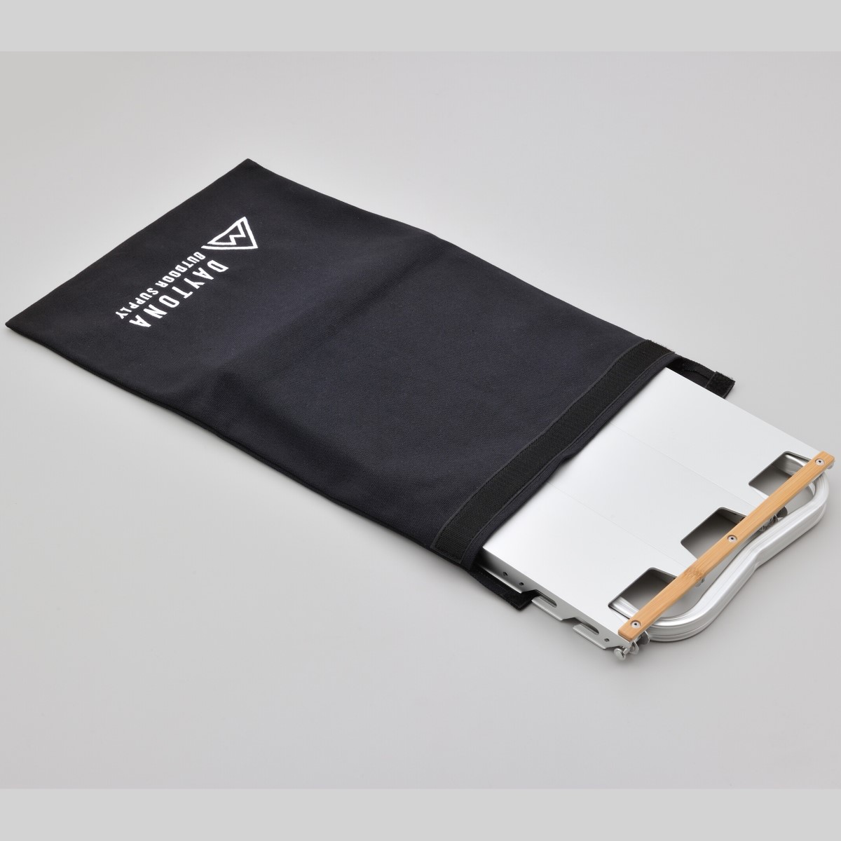 フラットアルミテーブルが収まる帆布の収納バッグ。フラットアルミテーブルやシートバッグの傷つき防止に。