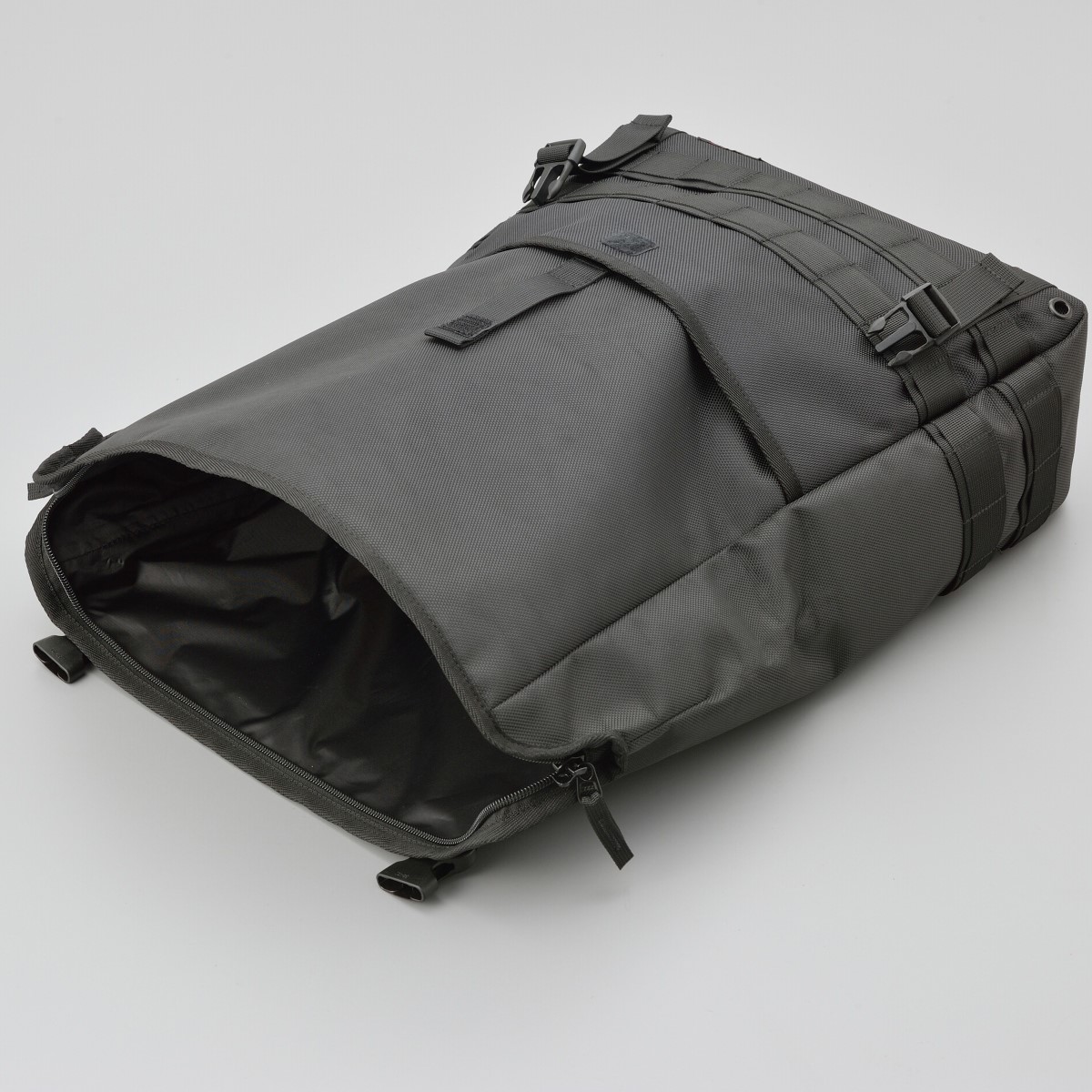 水の浸入を防ぐシーム加工。小分けポケット付き。底面は熱に強い帆布生地を使用。背面部をサドルバッグサポートに差し込むことで走行時の振れを抑制します。