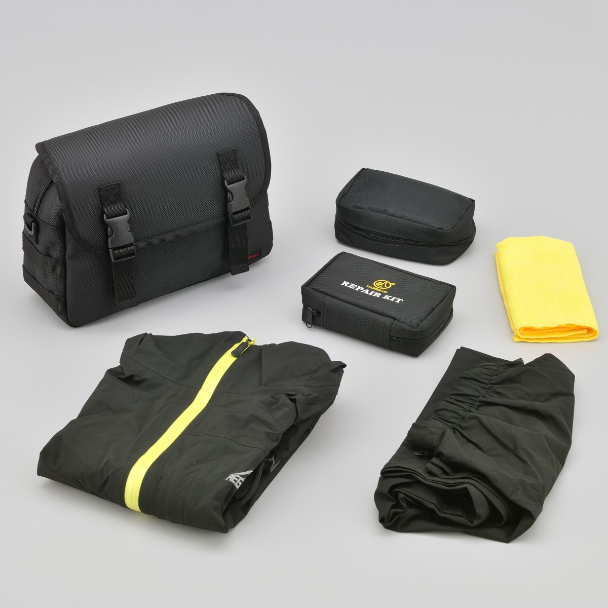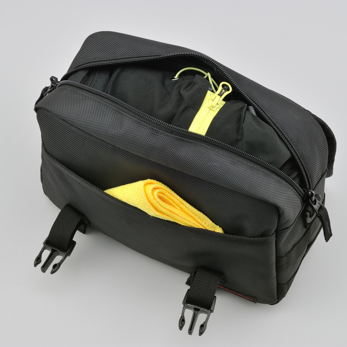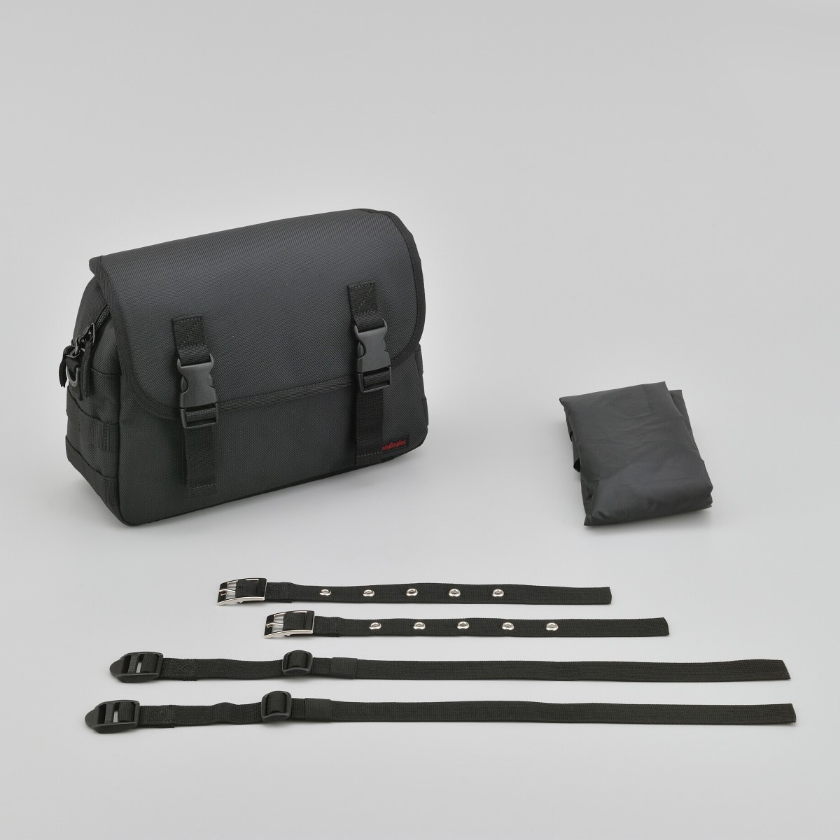 シートバッグと同じ強度を持つ優れたポリエステル1680デニール生地を採用。フラップ、前面、側面の生地の間にウレタン芯を入れることにより型崩れしにくく、シートバッグと同時装着した際に統一感がある見た目になります。側面についているパルステープは幅を25mmにしてポーチを付けやすく、レインカバーはバッグに合わせて立体的に仕上げバタつきを抑えました。