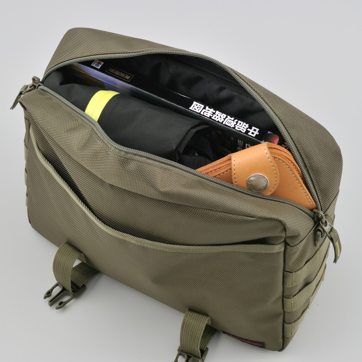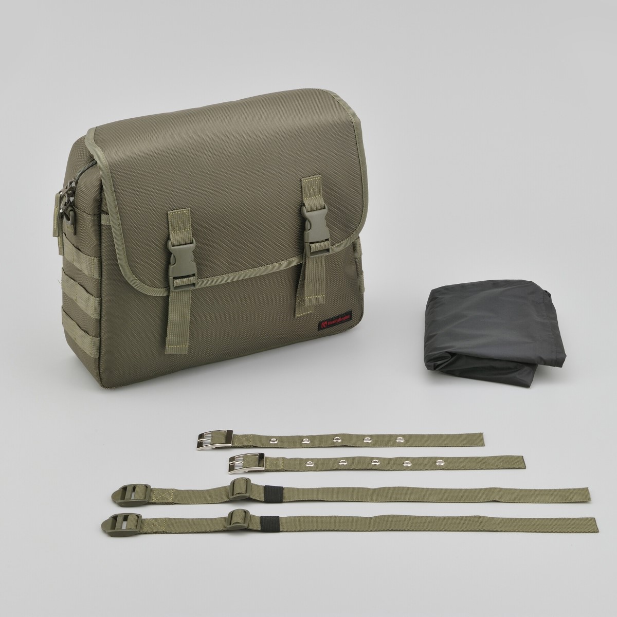 シートバッグと同じ強度を持つ優れたポリエステル1680デニール生地を採用。フラップ、前面、側面の生地の間にウレタン芯を入れることにより型崩れしにくく、シートバッグと同時装着した際に統一感がある見た目になります。側面についているパルステープは幅を25mmにしてポーチを付けやすく、レインカバーはバッグに合わせて立体的に仕上げバタつきを抑えました。