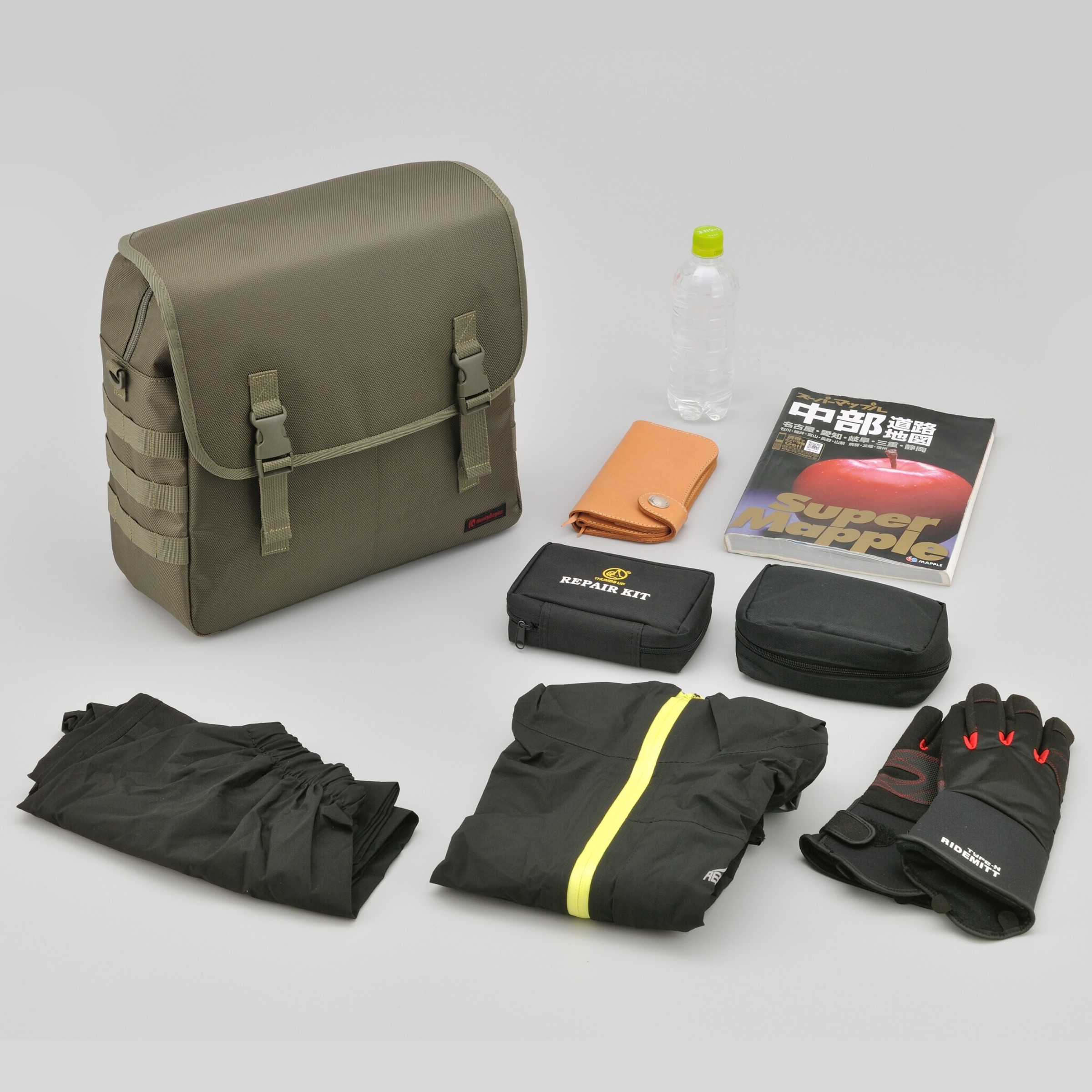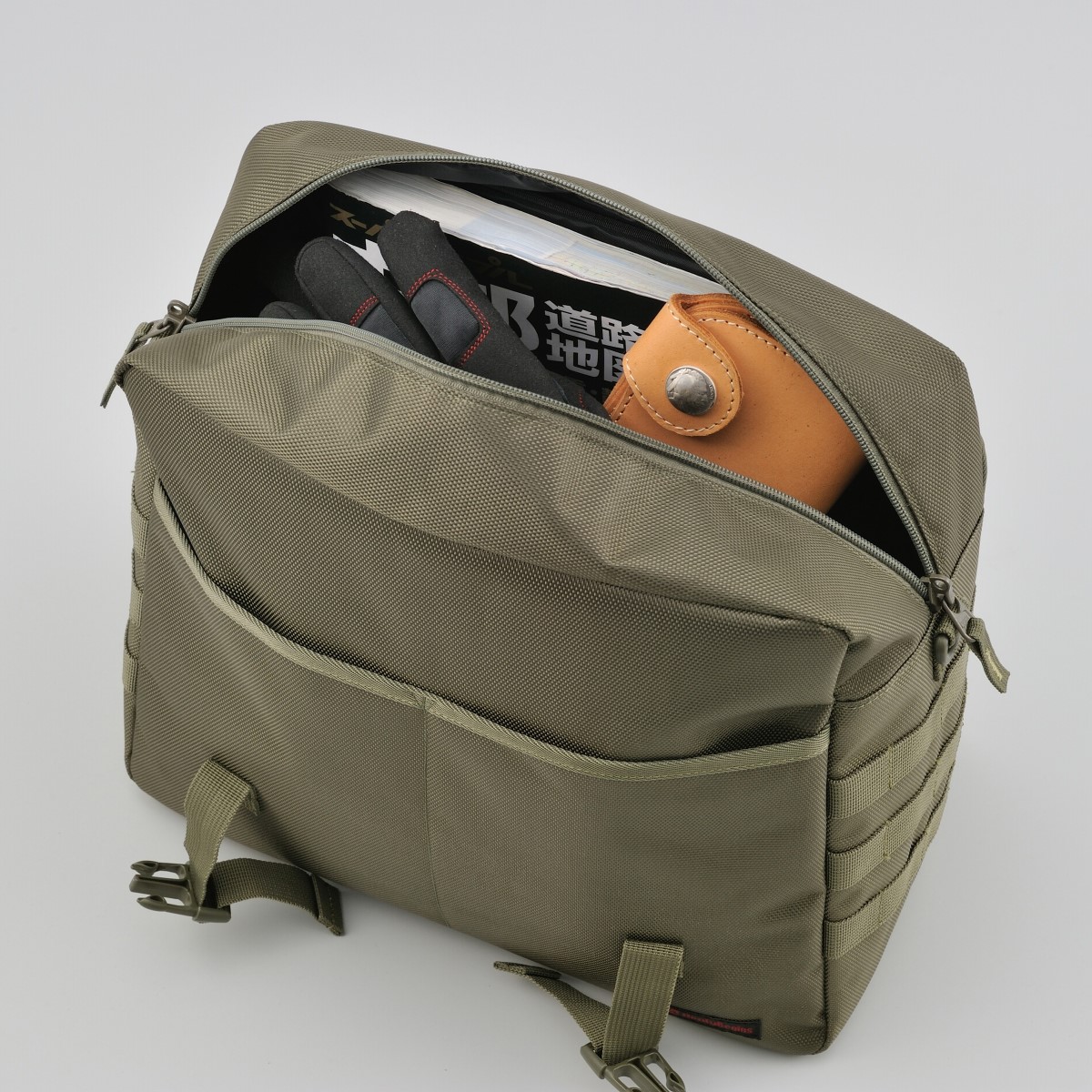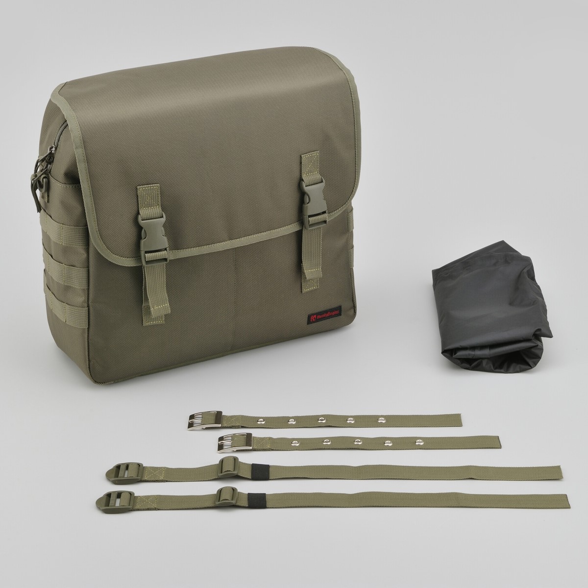 シートバッグと同じ強度を持つ優れたポリエステル1680デニール生地を採用。フラップ、前面、側面の生地の間にウレタン芯を入れることにより型崩れしにくく、シートバッグと同時装着した際に統一感がある見た目になります。側面についているパルステープは幅を25mmにしてポーチを付けやすく、レインカバーはバッグに合わせて立体的に仕上げバタつきを抑えました。