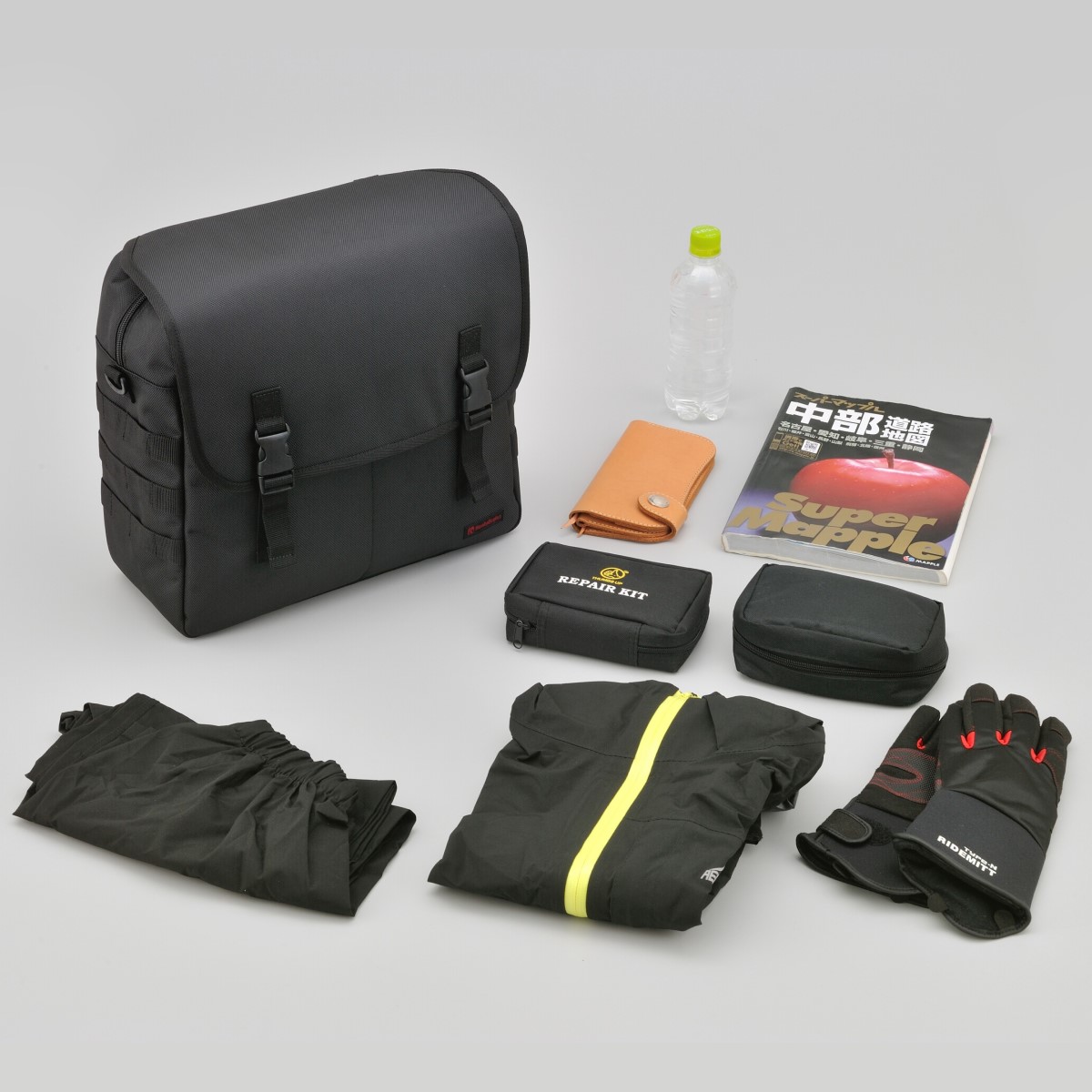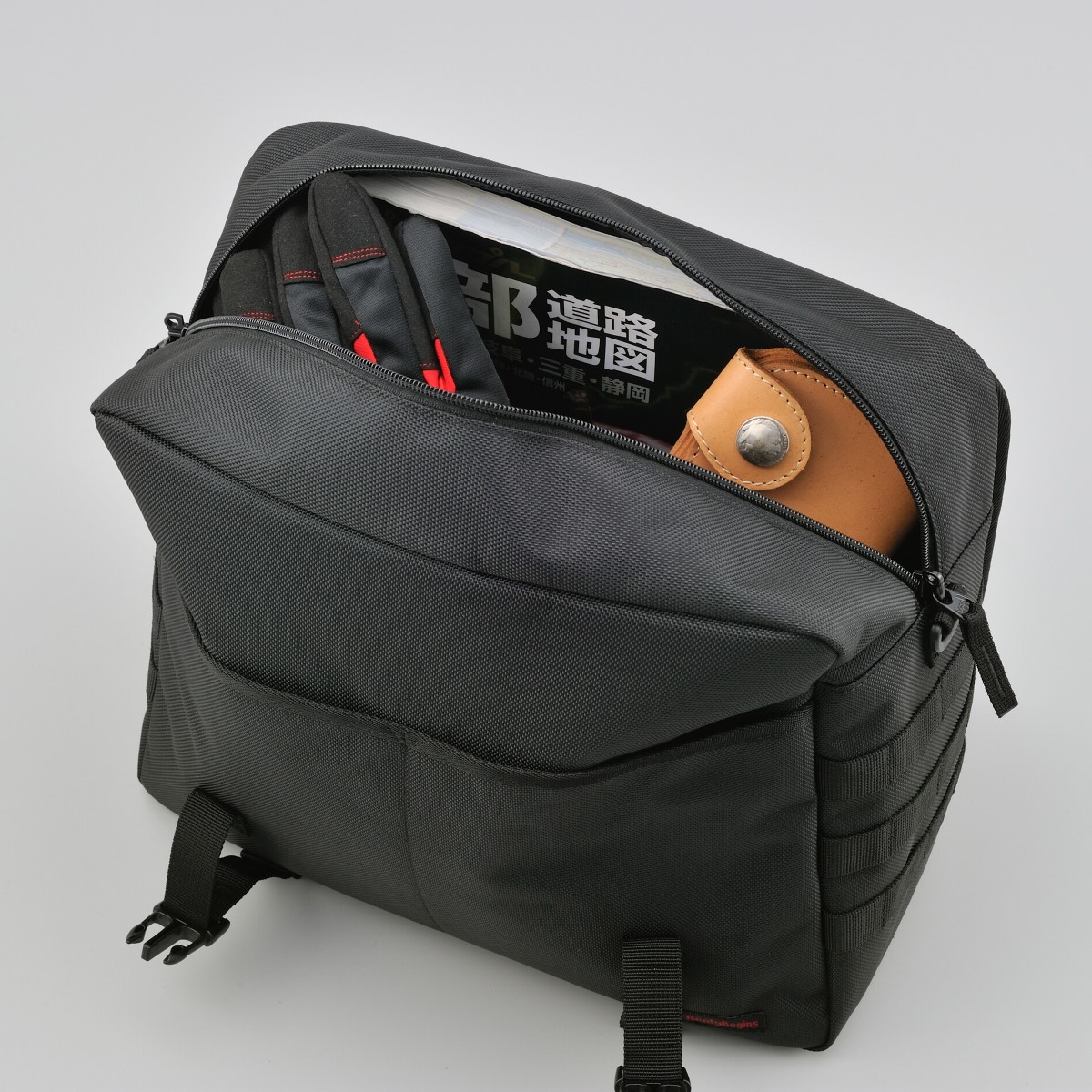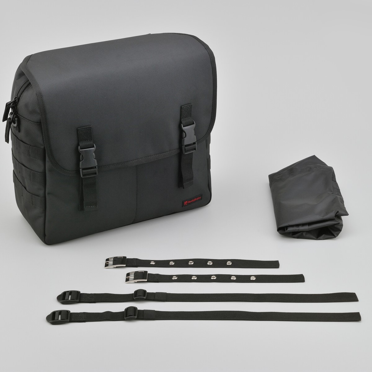 シートバッグと同じ強度を持つ優れたポリエステル1680デニール生地を採用。フラップ、前面、側面の生地の間にウレタン芯を入れることにより型崩れしにくく、シートバッグと同時装着した際に統一感がある見た目になります。側面についているパルステープは幅を25mmにしてポーチを付けやすく、レインカバーはバッグに合わせて立体的に仕上げバタつきを抑えました。
