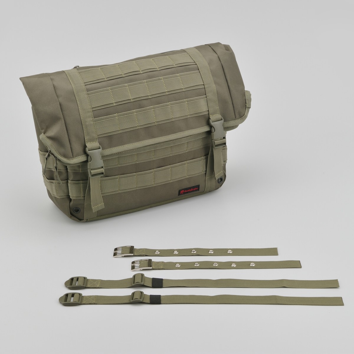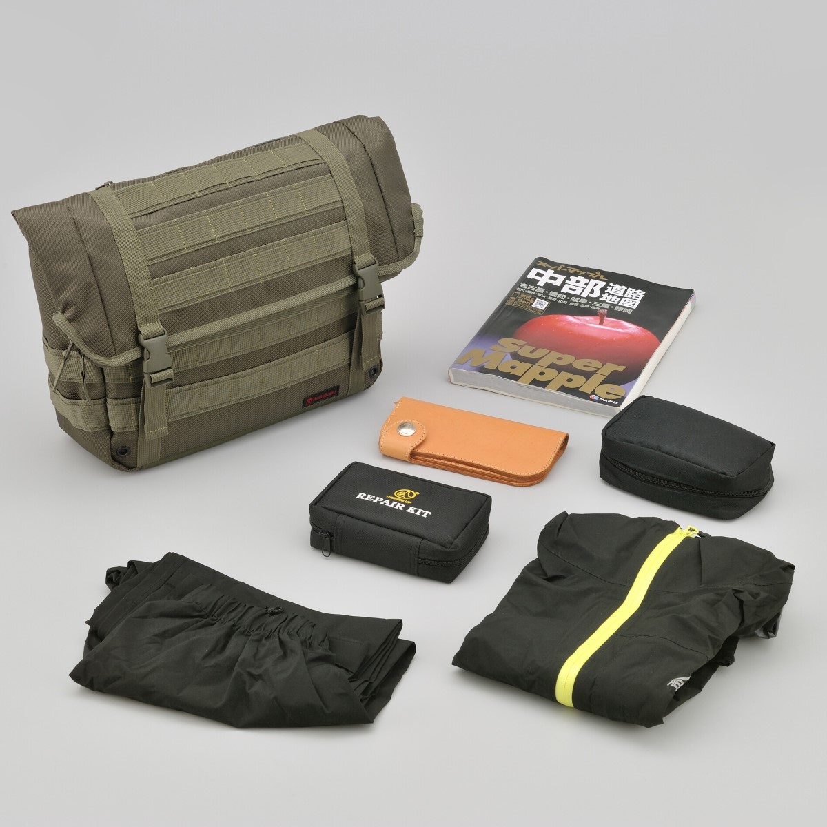 水の浸入を防ぐシーム加工。小分けポケット付き。底面は熱に強い帆布生地を使用。背面部をサドルバッグサポートに差し込むことで走行時の振れを抑制します。
