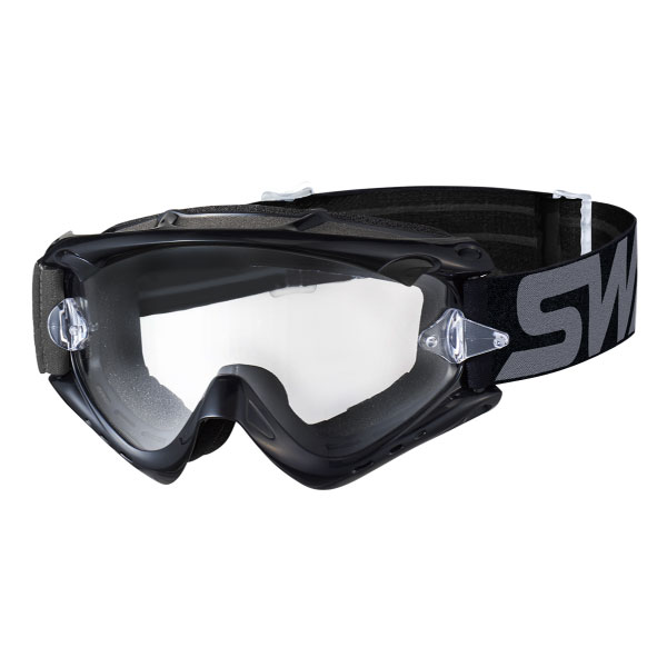レンズカラー:クリア(可視光線透過率 90%)広い視界と高いフィット感を併せ持つSWANSダートゴーグルのミドルモデル。スタイリッシュなデザインでフルフェイスにもよく似合います。クリアレンズ搭載のベーシックモデル。別売りのティアオフレンズ対応。