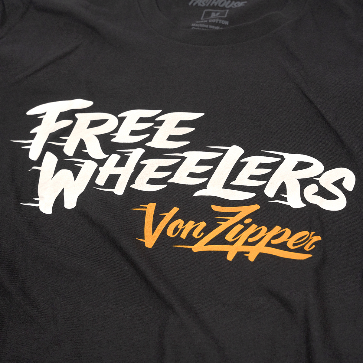 アイウェアブランド「VONZIPPER」とのコラボレーションTシャツ。ミッドウェイトコットンを使用したクルーネックTシャツ。アメリカンファクトリーによるプリントを施し、収縮を防ぎ、下ろし立てでも着心地の良い洗濯加工済み。
