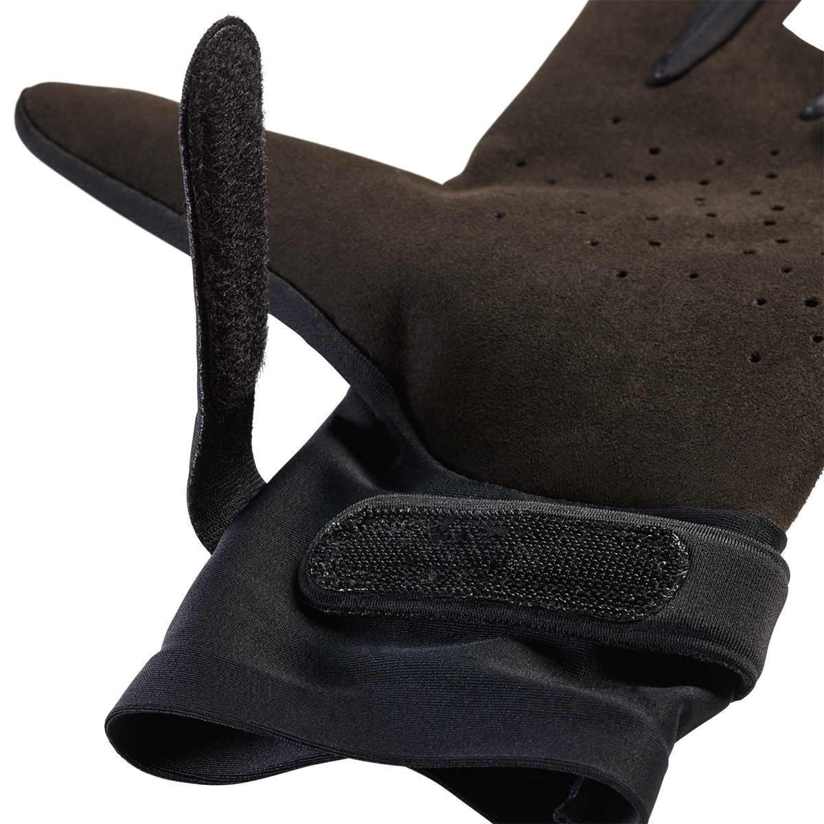 ・掌は軽くてしなやかな肌触りの単層のクラリーノR素材を使用しダイレクトな操作感を実現。パンチング加工を施し高い通気性を併せ持つ。