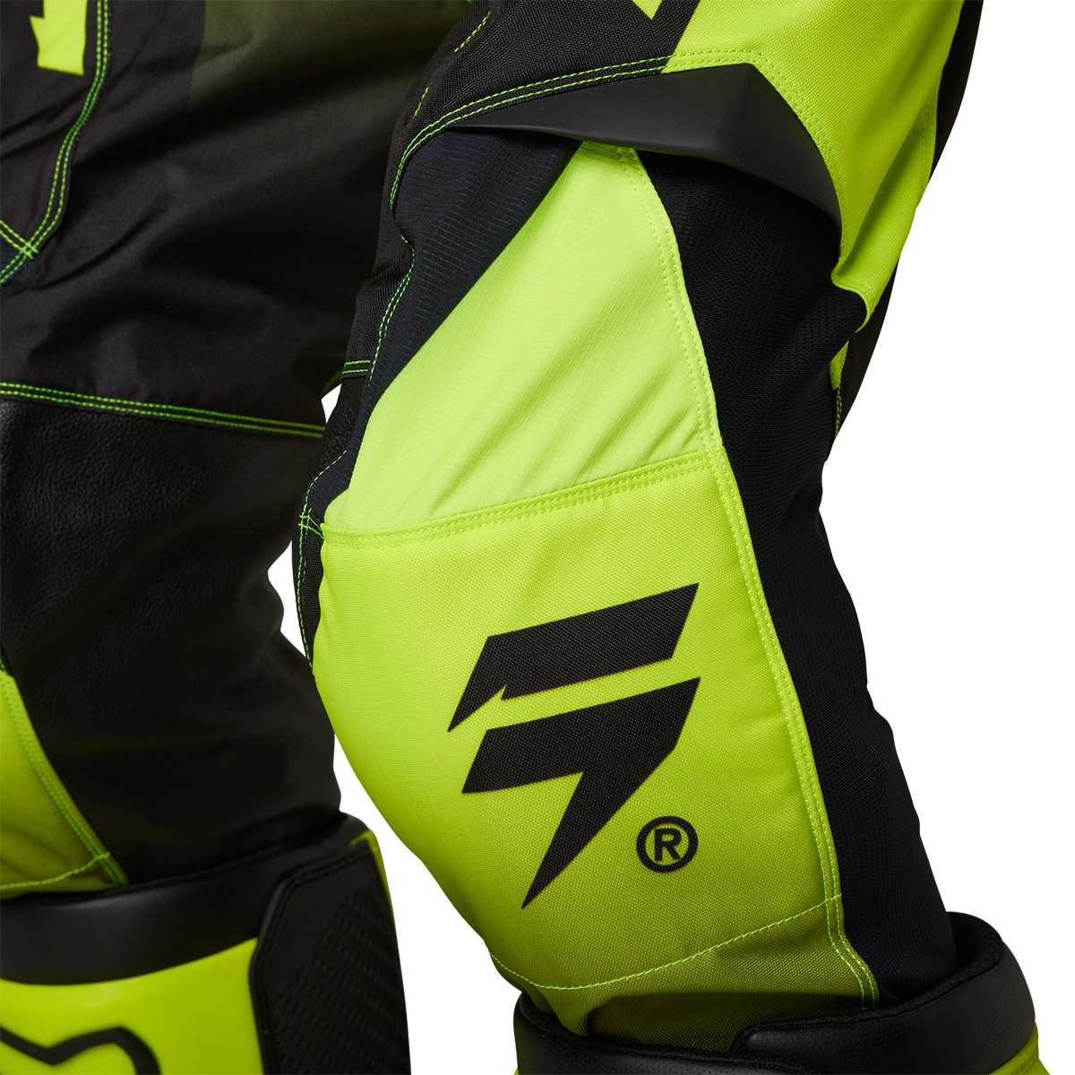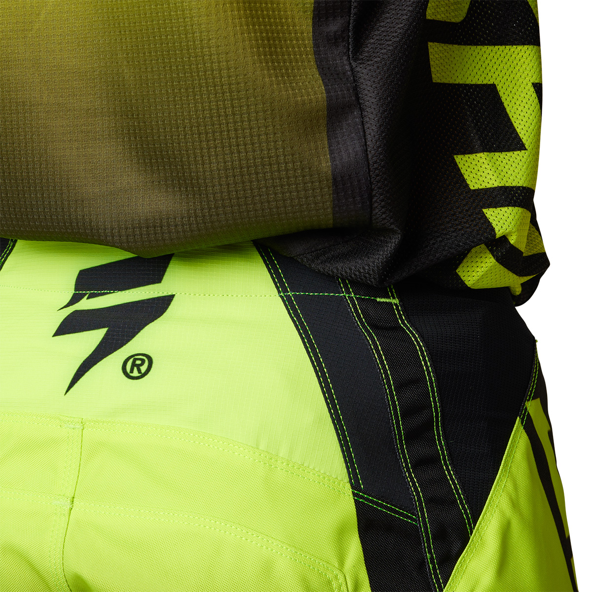 ・バイクの乗車姿勢を想定して裁断されたプリカーブドデザインにより、運動性と快適性が向上。