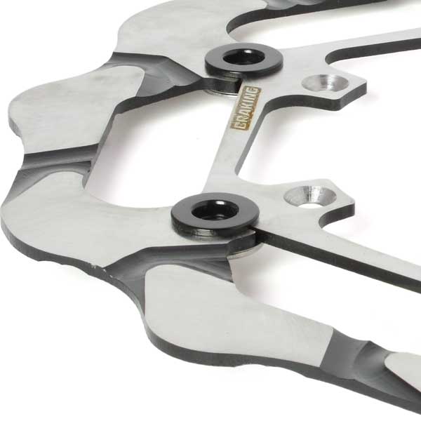 モトクロス・エンデューロ用として開発されたバットフライオーバーサイズローターキット。独自の技術によりディスク面に溝をつくることにより放熱性に優れ、更にマッドクリーニング効果により安定したブレーキングを実現。デスクは270mmオーバーサイズ採用、高い制動力を発揮。鍛造成形アルミをCNCで仕上げ、アルマイト処理を施した専用ブラケットと高性能レーシングメタルパッド(CM46)が付属。