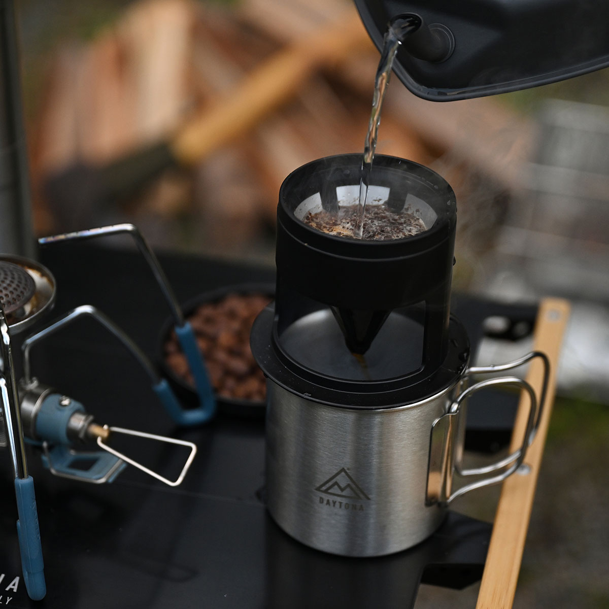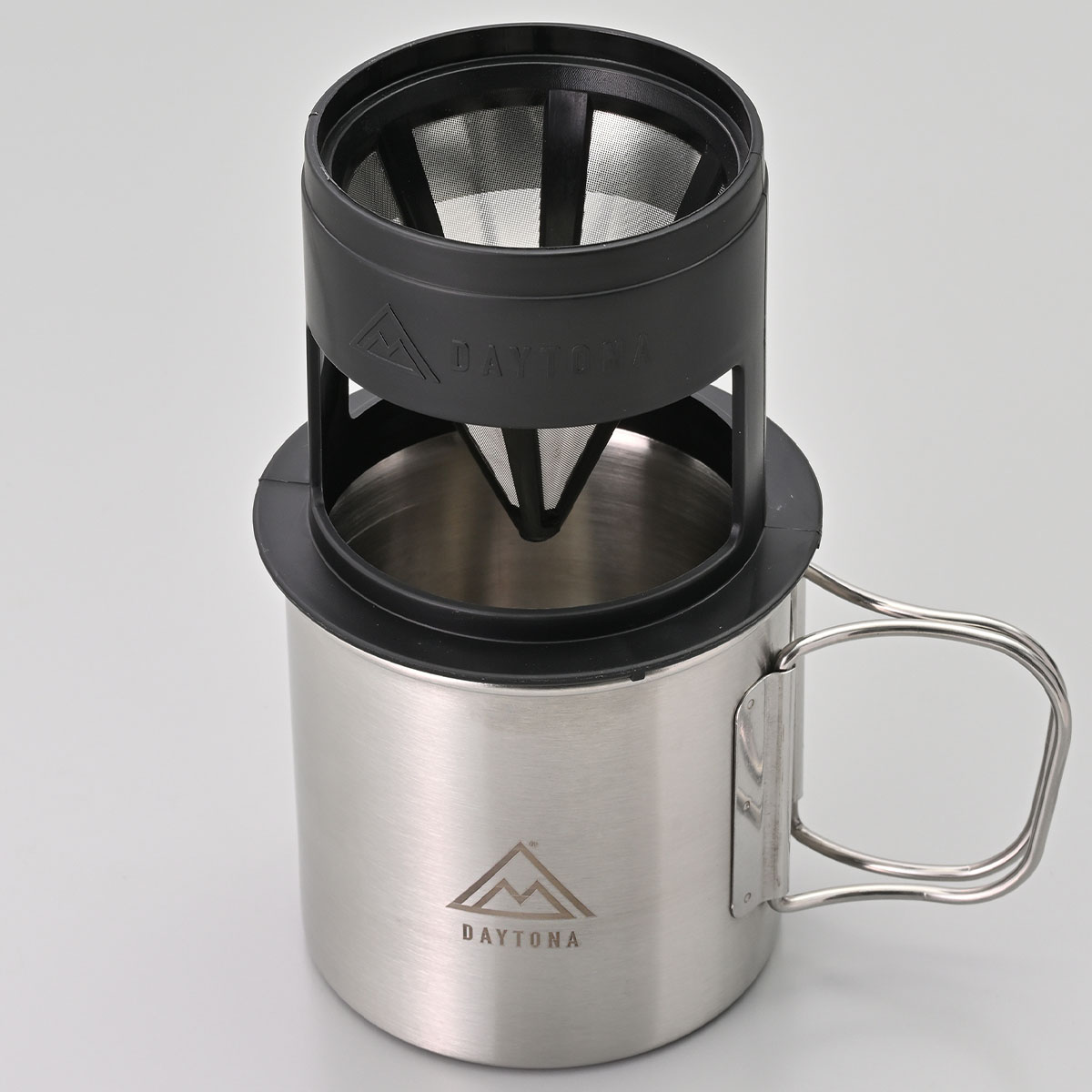 コーヒードリッパーとステンレスカップのセット。カップ中に収納できるコンパクトなドリッパーは、ペーパーフィルターの要らないステンレスフィルターを採用することで、ペーパーフィルターよりもコーヒー豆の油分を通しやすく、香り豊かな味わいを楽しめます。中空構造のカップは保温効果が高く、ステンレス製なのでお手入れも簡単です。