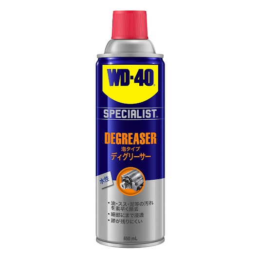 ・油、煤、泥等の汚れを素早く除去。・細部にまで浸透・跡が残りにくいウォーターベース・泡タイプ・油・スス汚れ、ヤニ・接着剤などを素早く除去します。150cm離してスプレーしてください。細かい泡が塗布した表面の奥まで浸透し汚れ等を素早く除去します。機器がスムーズに動き長持ちします。