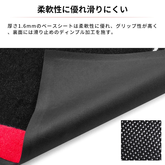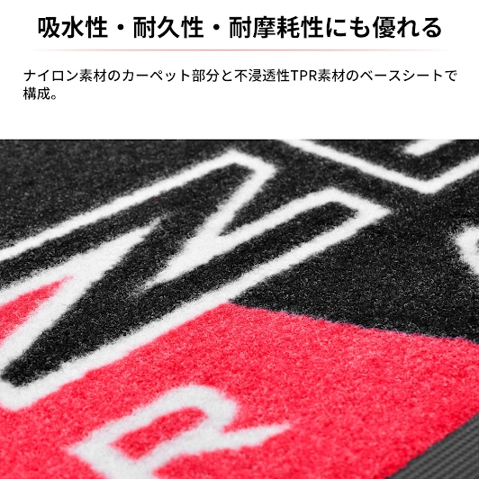 吸水性・耐久性・耐摩耗性にも優れるナイロン素材のカーペット部分と不浸透性TPR素材のベースシートで構成。