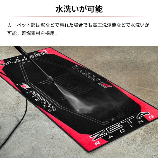 カーペット部は泥などで汚れた場合でも高圧洗浄機などで水洗いが可能。難燃素材を採用。