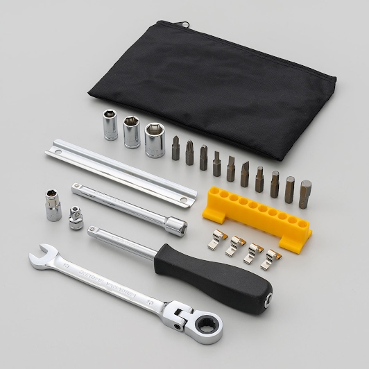 コンパクトながら役立つものをセットにしました。ツーリング時に、車載工具と一緒に持っていると、いざという時に安心です。