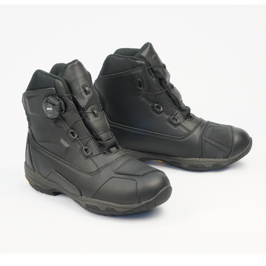 圧倒的にスピーディな着脱を可能にするダイヤルワイヤーシステム「a-top」、アウターソールのトップブランド「Vibramソール」のうちモーターサイクルに最適なものを採用した、ラフアンドロードが送る防水透湿ライディングシューズ。デザインされた幅広シフトパッドや被視認性を高めるリフレクター、整形くるぶしガードなどを装備したハイカットブーツでありながら、片足でわずか500g以下の超軽量化を実現しました※1。防水・透湿・軽量で、通勤通学などのシティユースからロングツーリングまで幅広く活躍できるライディングシューズです。