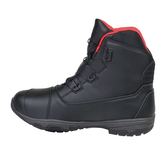 圧倒的にスピーディな着脱を可能にするダイヤルワイヤーシステム「a-top」、アウターソールのトップブランド「Vibramソール」のうちモーターサイクルに最適なものを採用した、ラフアンドロードが送る防水透湿ライディングシューズ。デザインされた幅広シフトパッドや被視認性を高めるリフレクター、整形くるぶしガードなどを装備したハイカットブーツでありながら、片足でわずか500g以下の超軽量化を実現しました※1。防水・透湿・軽量で、通勤通学などのシティユースからロングツーリングまで幅広く活躍できるライディングシューズです。