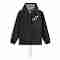 低めの立ち襟にカバー付きフロントジッパー、リブ仕様の袖口と裾でフィット感を確保。