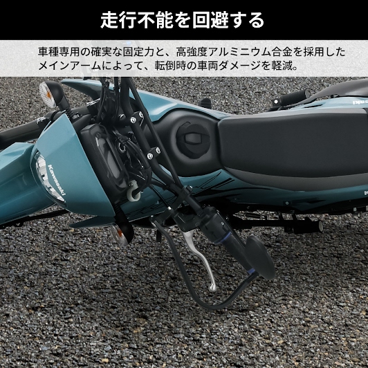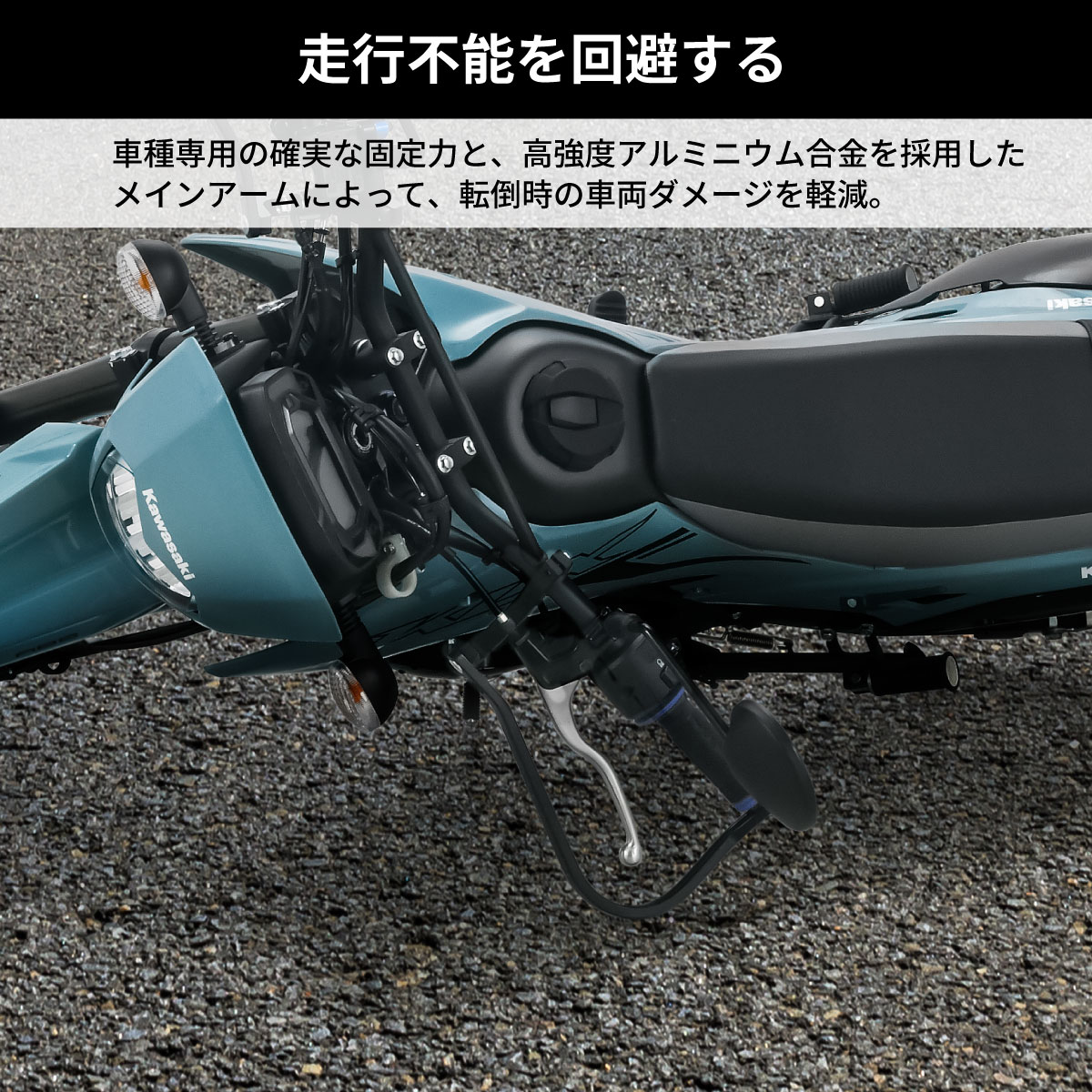 純正ハンドルバーにも対応したKLX230/SM専用のアルミニウムハンドガード。