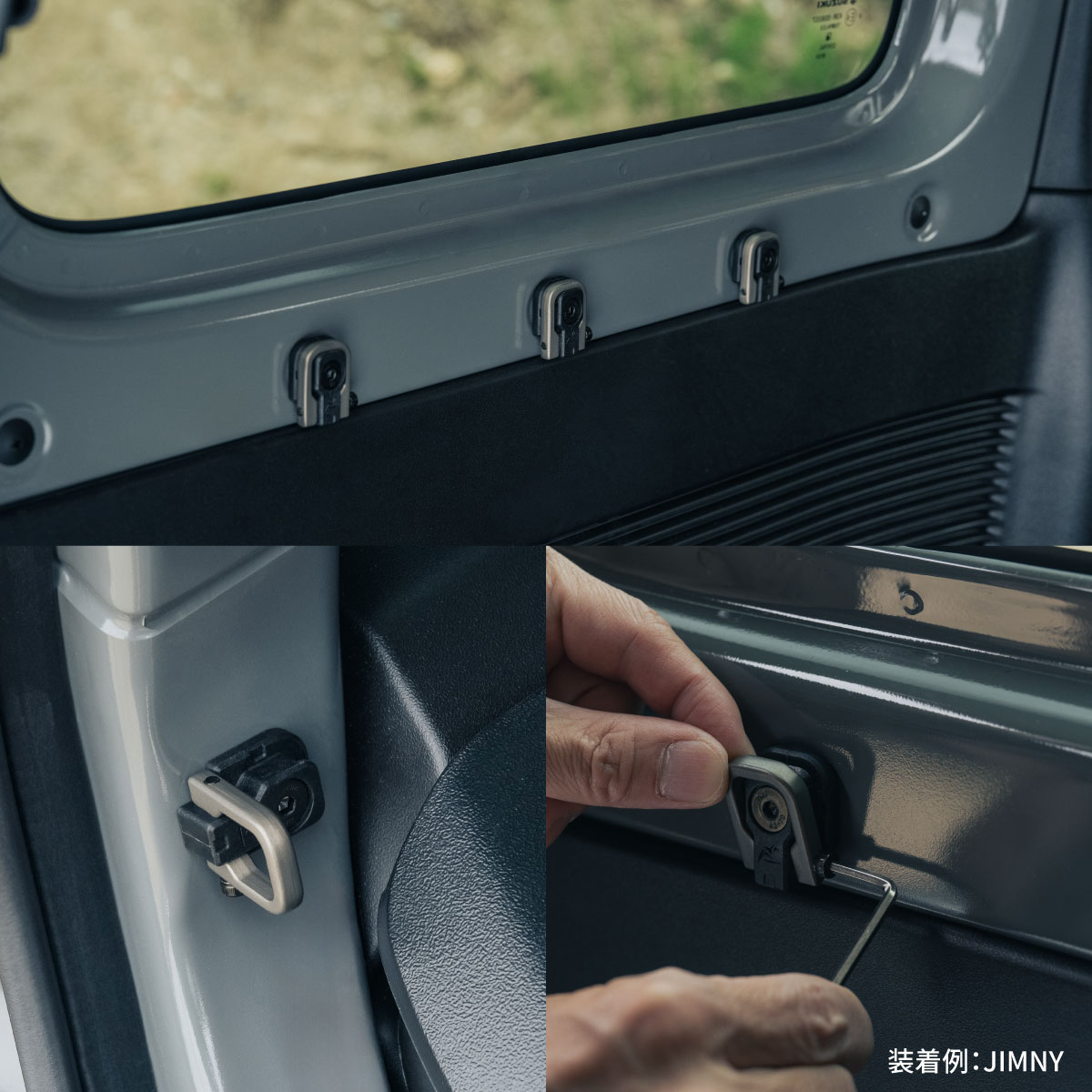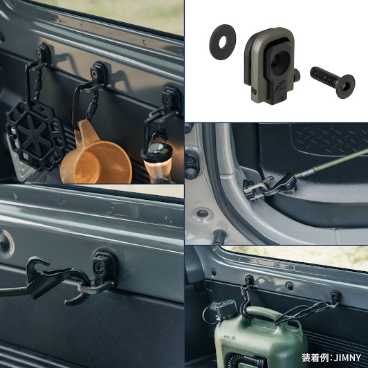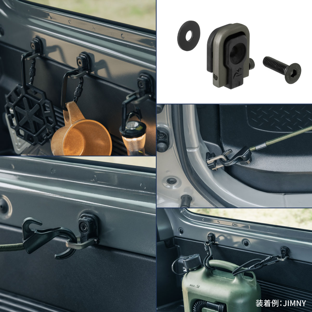 装着することにより、荷物を固定するカーゴネットやカーゴロープなどを取付けやすくできる。