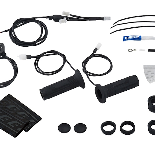 ●確かな操縦性と熱伝導性を実現したグリップデザイン。●コンパクトなスイッチで5段階の温度調節が可能。温度レベルは5つのLEDランプで表示。●3サイズのエクステンドスリーブにより、グリップ長を115/120/130mmに調節可能。●取り外し可能なバーエンドキャップ採用により、バーエンドタイプと非貫通タイプの両方に対応。