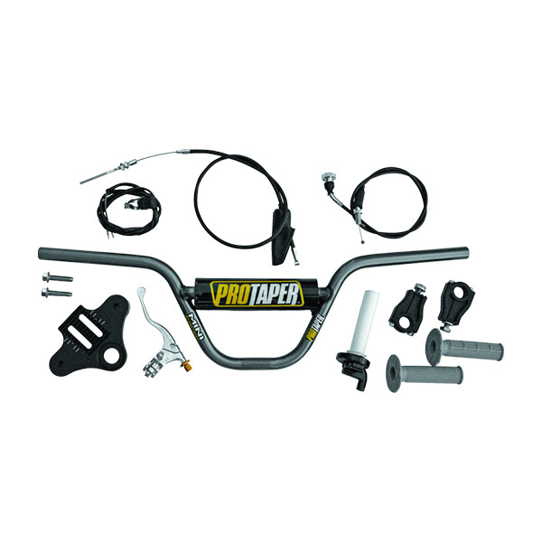 7インチライズクロモリProTaperRハンドルバー(パッド付き)、スロットルケーブル、ブレーキケーブル、キルスイッチ、ブレーキレバー/パーチ、ProTaperRハーフワッフルグリップ、スロットルハウジングアセンブリが含まれます。