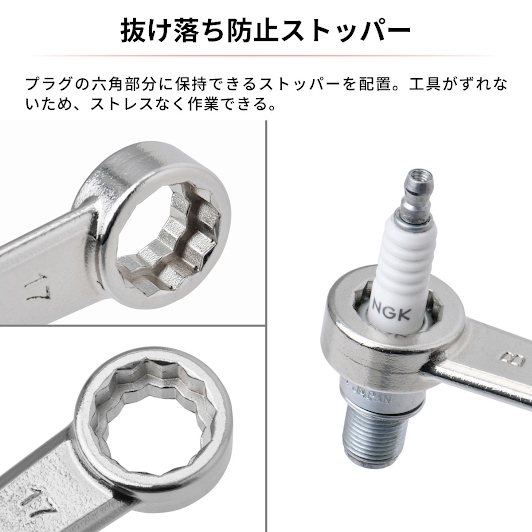 抜け落ち防止ストッパーにより、六角部分に掛けやすく回しやすい。