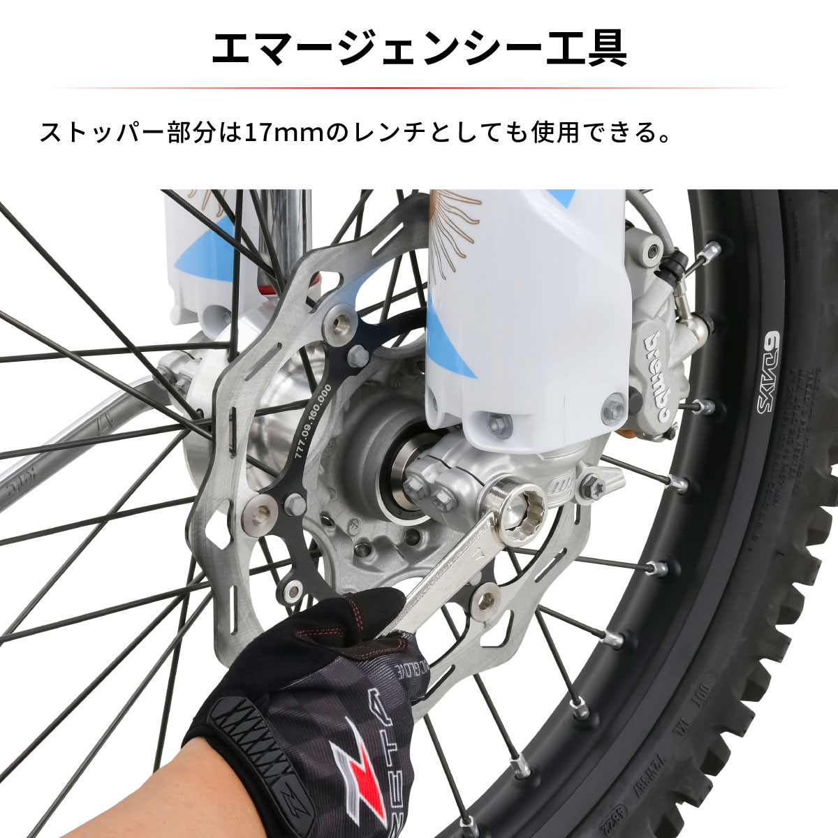 ストッパーは17mmのレンチを兼ねており、エマージェンシー工具として使用可能。