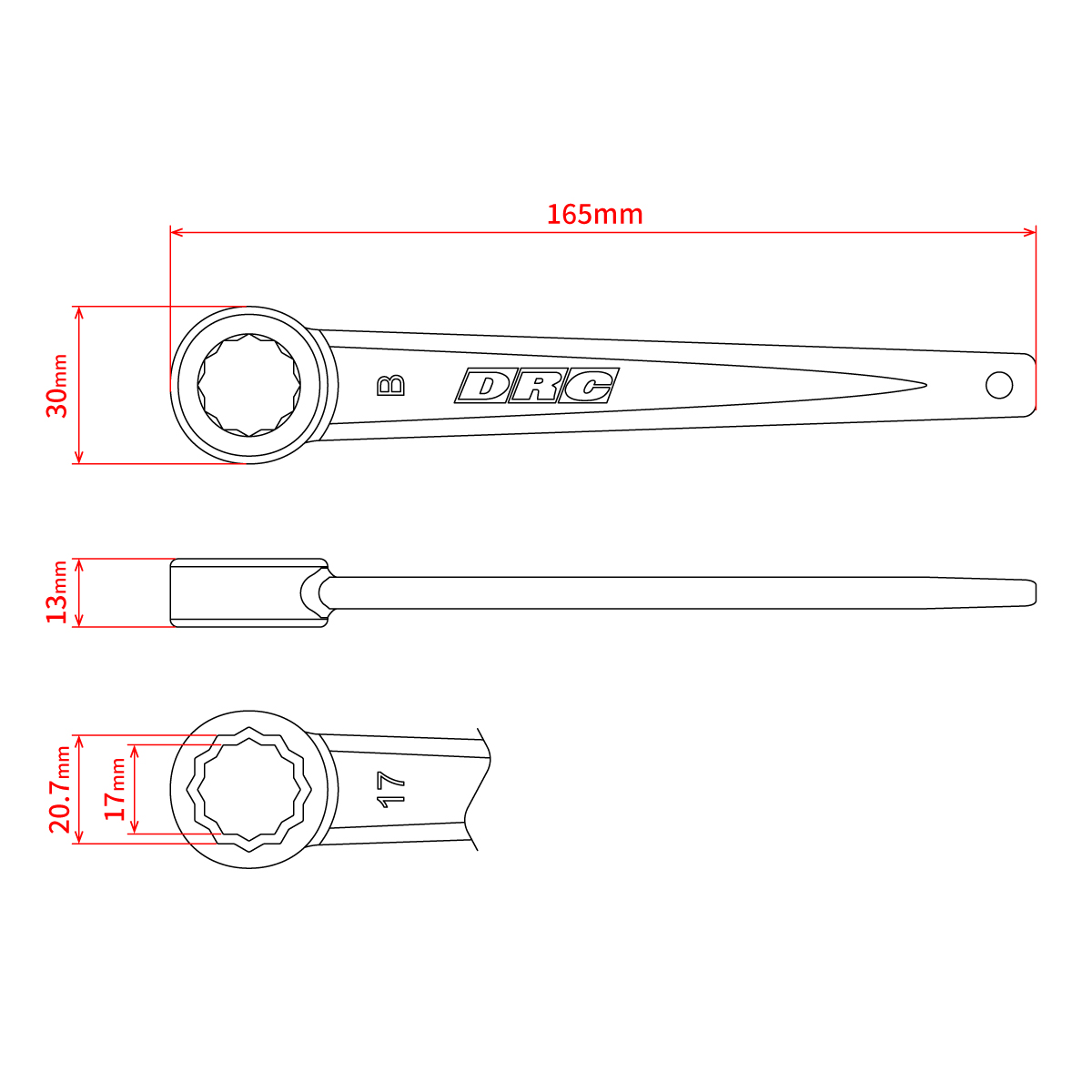 水冷2ストロークエンジン用のBタイプ(20.8mm)プラグレンチ。