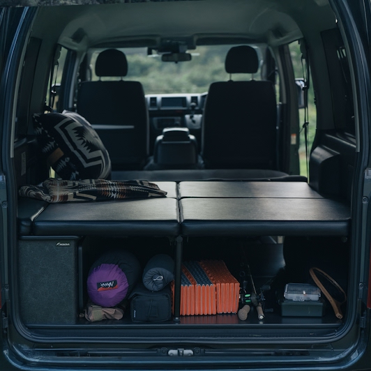 ハイエースのラゲッジスペースを「快適で上質なベッド空間」へと変貌させる。