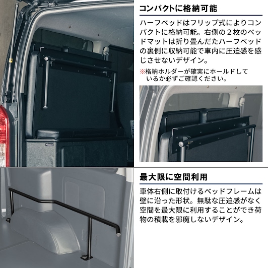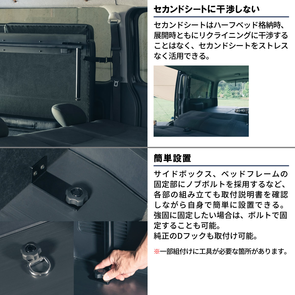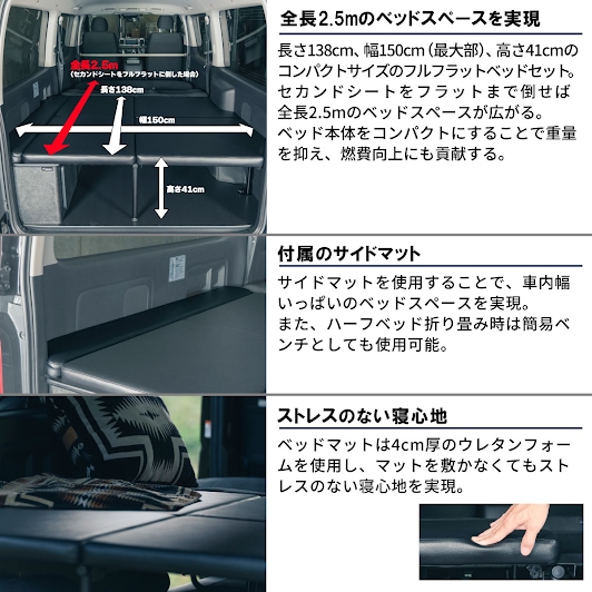 「日常と非日常をシームレスにつなぐ。」ハイエースのために最適化された、上質と機能美のプレミアムベッドセット。