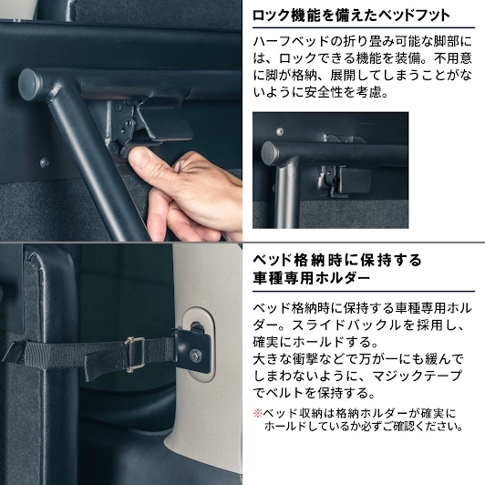 ※走行中のベッドで寝る行為(着座を含む)は大変危険です。走行中は絶対に使用しないでください。