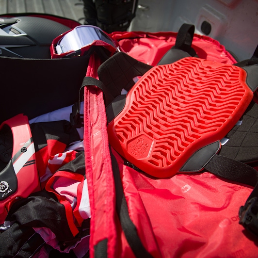 アトラスネックブレースとのフィッティングが完璧な、CEプロテクター装備のボディアーマー。