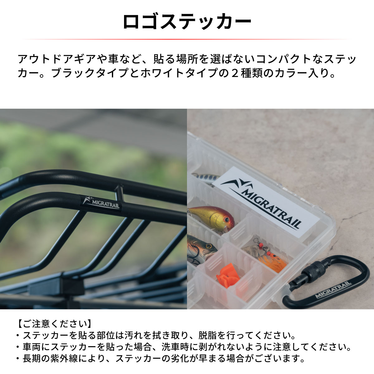 ミグラトレイルのロゴステッカーシリーズ。