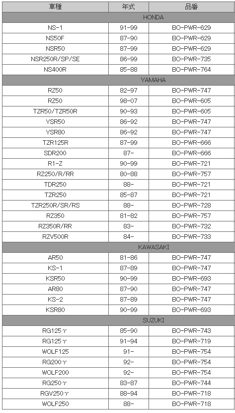 従来のリードバルブが1枚のプレート状に対し、パワーリードは硬度が異なる2種類で構成。よりしなやかなセカンダリーポートが素早く反応する事で、バルブ開度が不足しがちな低速域でも十分な開度を得られる。また、適切な混合気がシリンダー内に充填され、アクセル開度に応じた鋭いレスポンスを生む。
