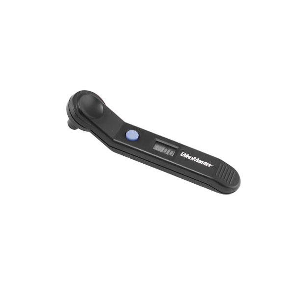 確認しやすいデジタル式のタイヤゲージ。ボタン1つで簡単に操作できる。使用しなければ15秒で自動的に電源をOFFする。・電池付属